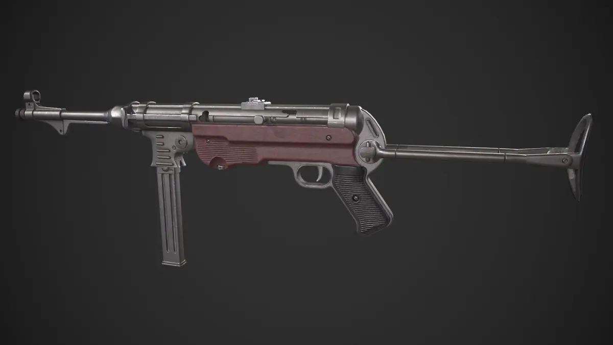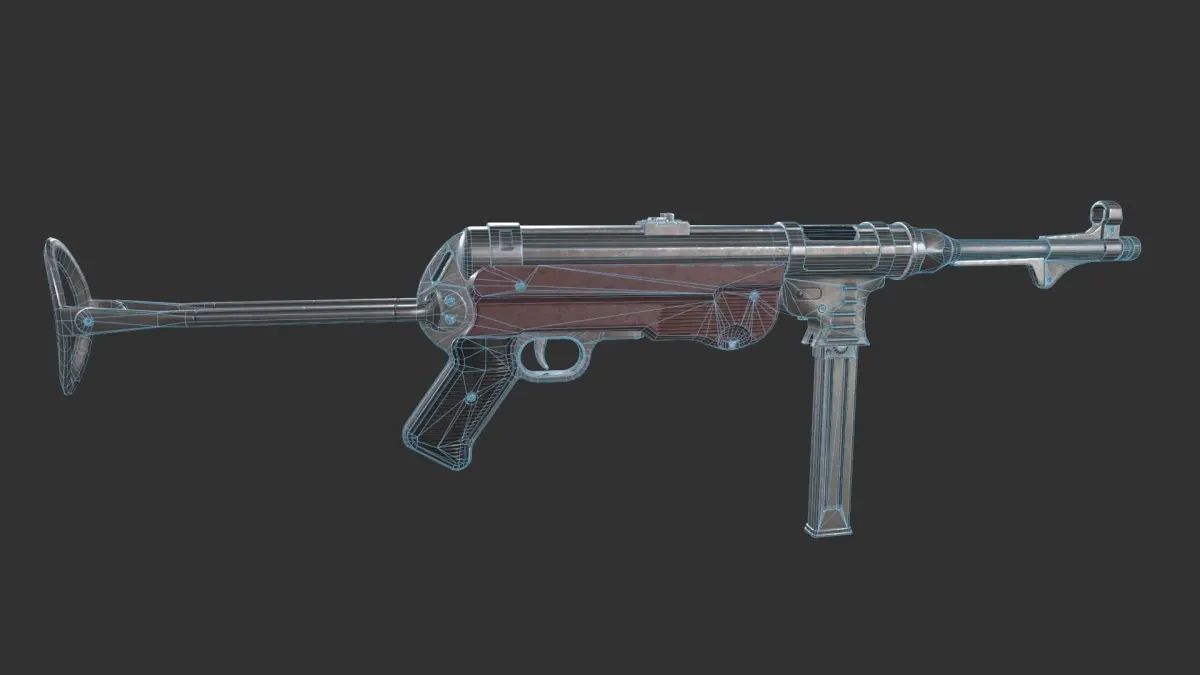 Game-ready MP40 Submachine Gun asset, with PBR textures included in the files. This has 12561 polys (23361 tris) and 12588 vertices.