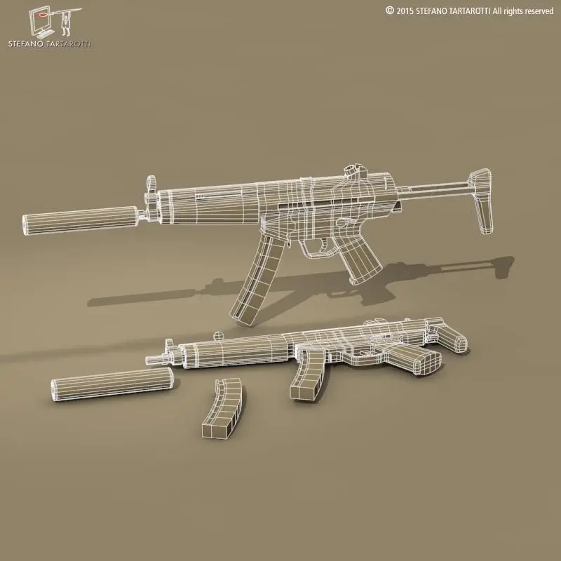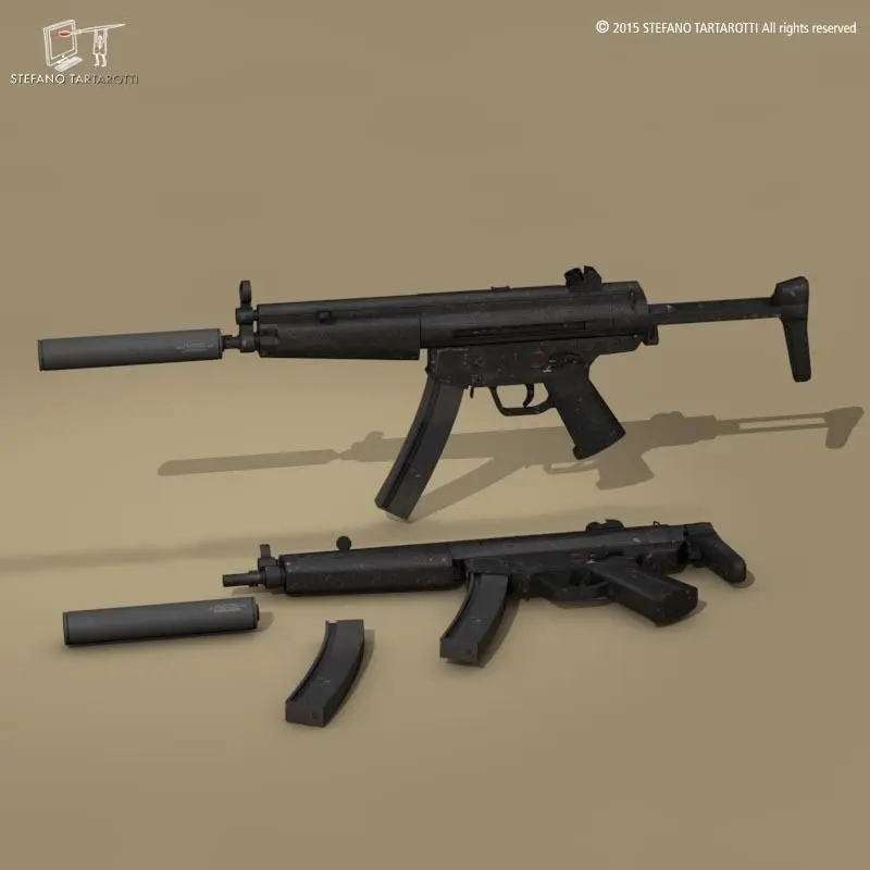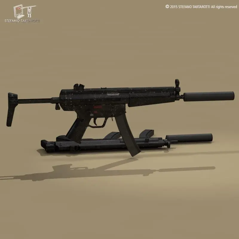 MP5A3 with retractable stock and suppressorThe model is textured.Made in cinema4d R12. Other formats have textures too. .fbx format is good for importing in 3dstudio max and Maya.Polygons 3667Vertices 3670If you like the model please rate it.
