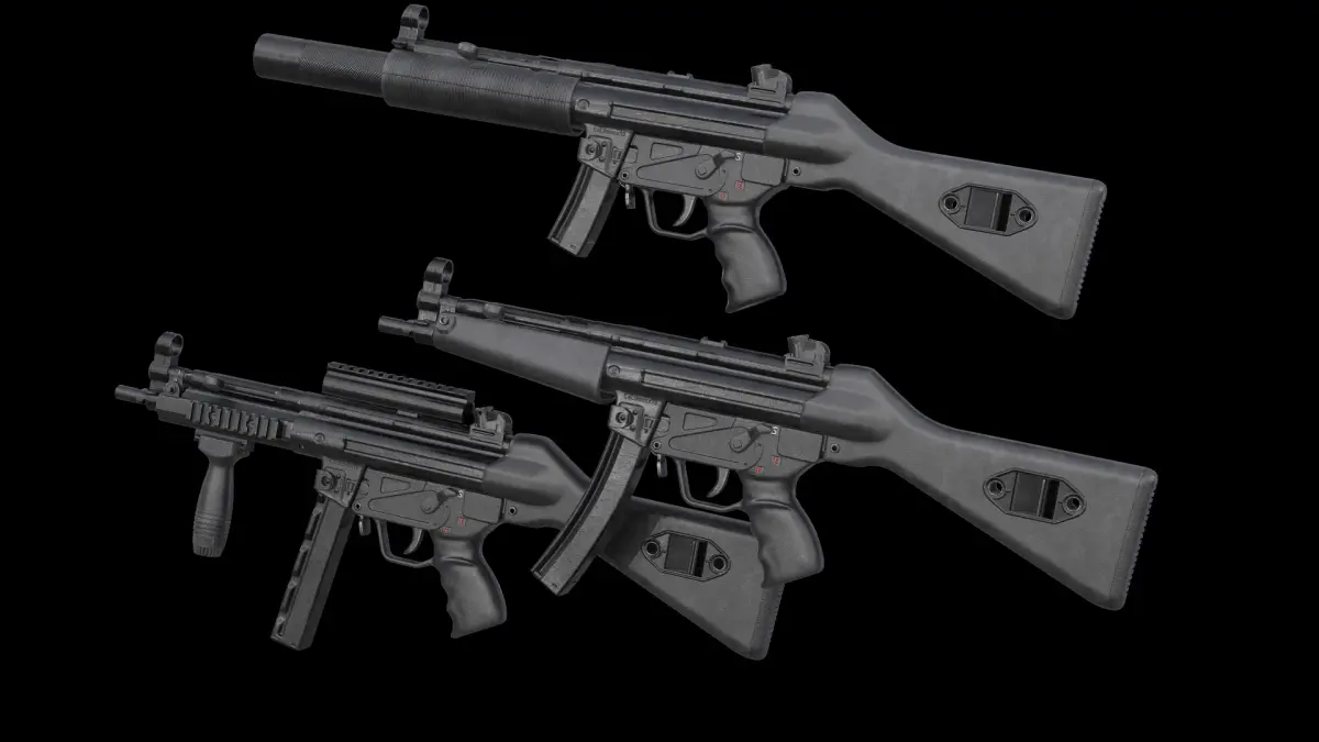 Game ready low (mid)-poly 3D models of MP5A2 and MP5SD2 + upgrades (FBX, Maya, Blender, 3ds Max). (Check out my other MP5 family models!)