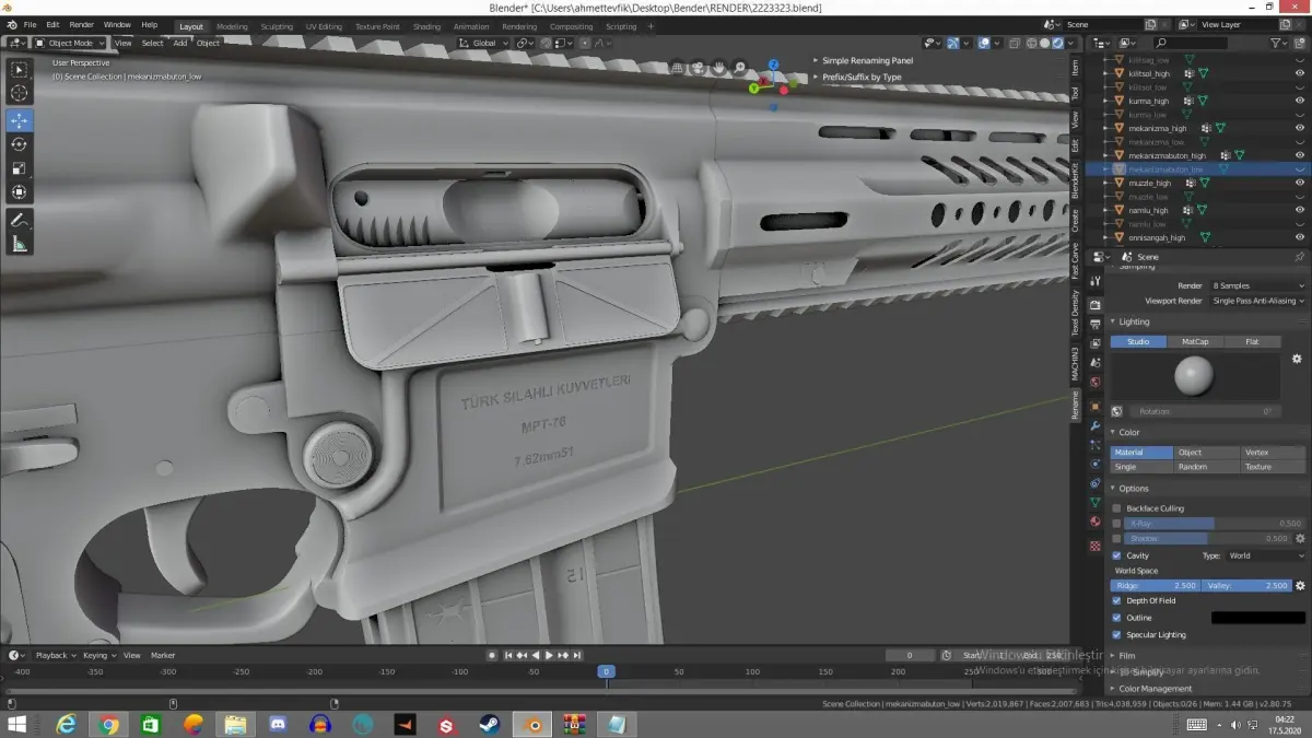 Ham halini sizlere sunuyorum, kendi tabirimle efsane yeniden doğdu :). Bilgisayarımın bazı problemleri olduğu için anca bukadar oluyor.PBR texture bake yada Render almaya çalıştığım zaman bilgisayar kendiliğinden kapanıyor.