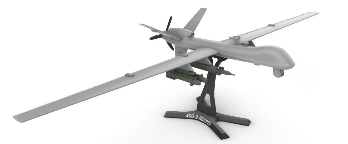MODEL OF THE MQ-9 Reaper IN 1:32 SCALE, DIVIDED INTO PARTS IN HIGH DEFINITIONTHE MODEL CAN BE PRINTED IN FDM AND ALSO IN SLA PRINTER