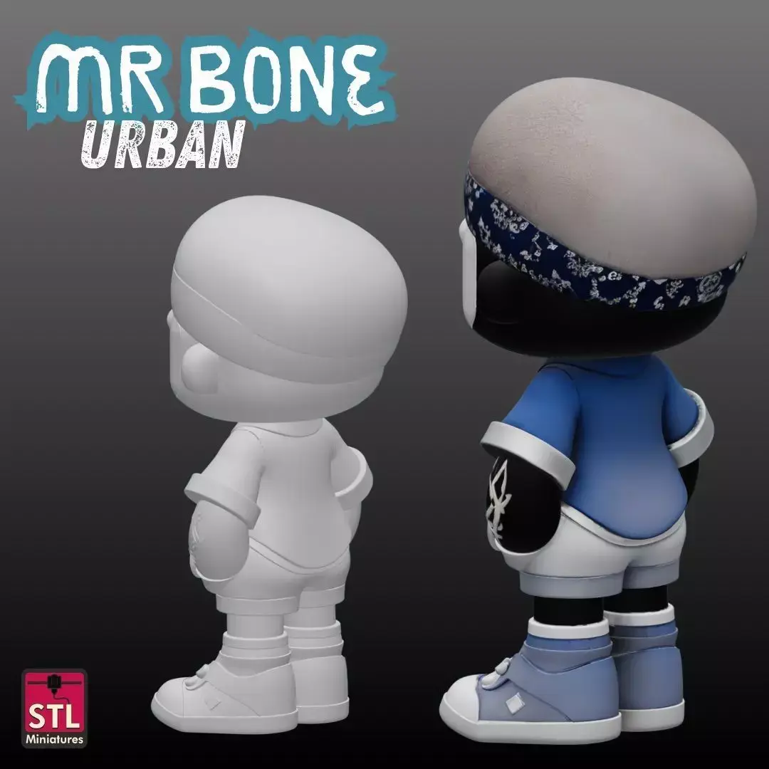 Keywords: mr bone stl, urban skeleton model, street style figure stl, 3d printable mr bone, resin skeleton collectible, t-shirt skeleton stl, bandana figure stl, single piece skeleton stl, stylized urban character stl, collectible skeleton model