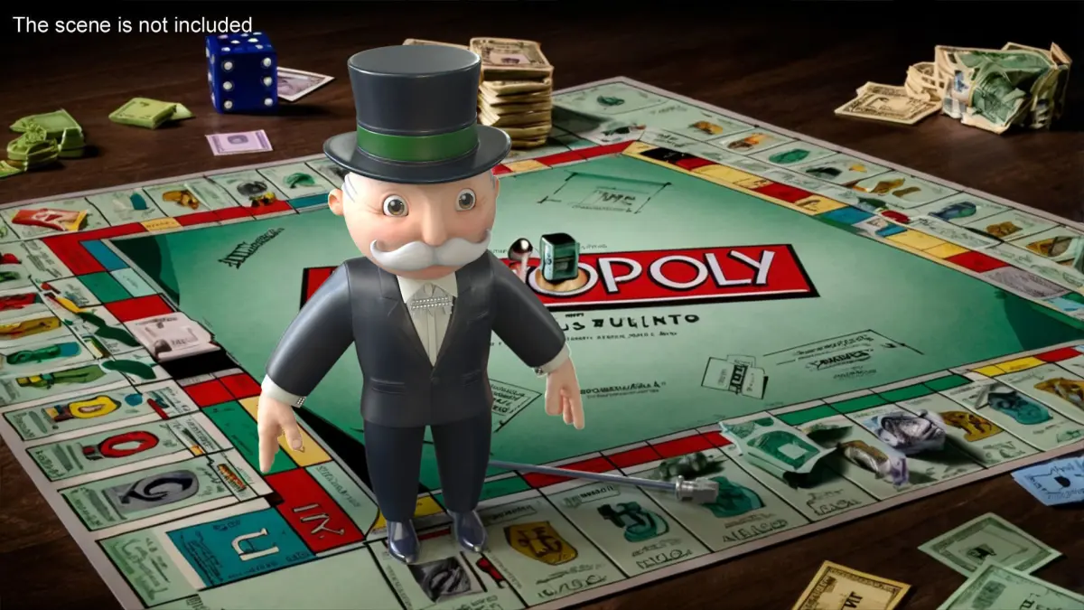 Mr Monopoly A-pose for 3D Print is a three-dimensional model of Mr. Monopoly that is a mascot of the board game of Monopoly, and that is depicted as a respectable old man (Monopoly Man, "Rich Uncle" Pennybags, Milburn Pennybags, or the Monopoly Guy male character) with a moustache who wears a morning suit with a bowtie and top hat.