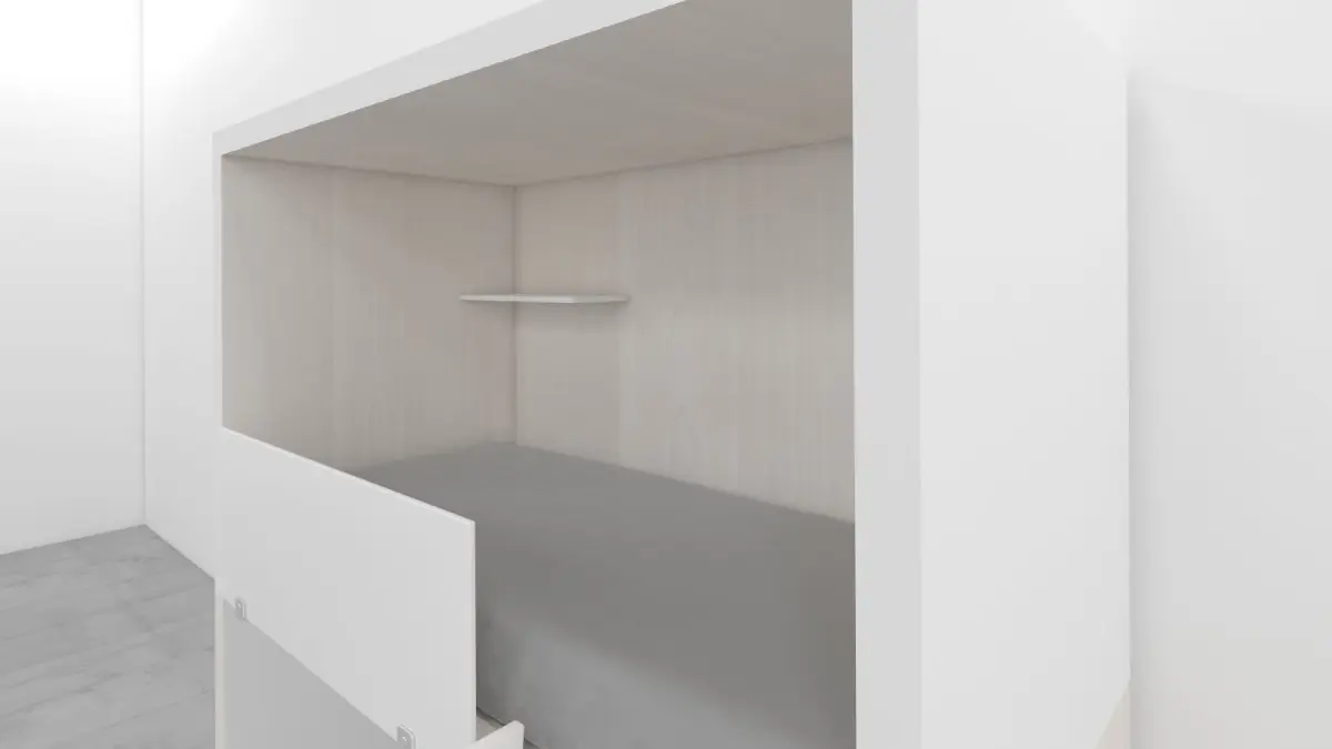 Cama litera individual en madera diseño minimalista, materiales y texturas incluidas