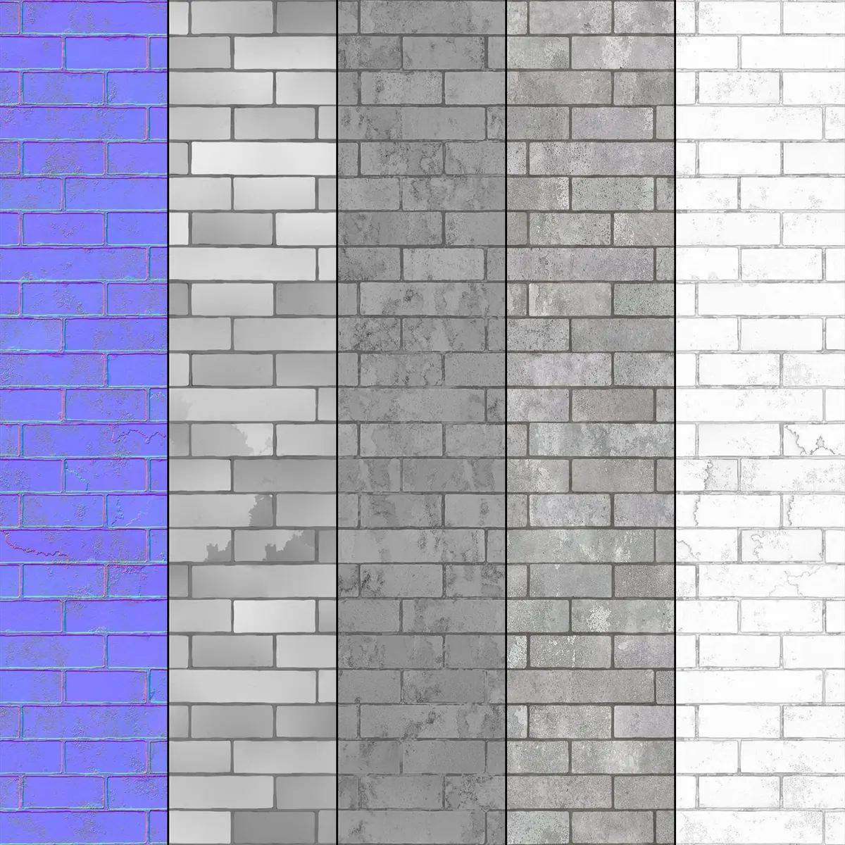Gray Brick Tiles PBR Material (Vray, Corona): BaseColor, Glossiness, Normal, Displacement
