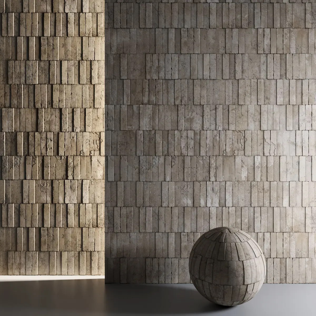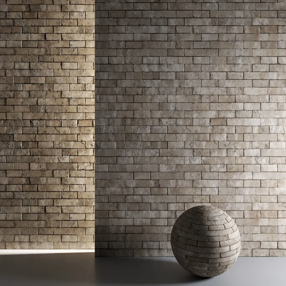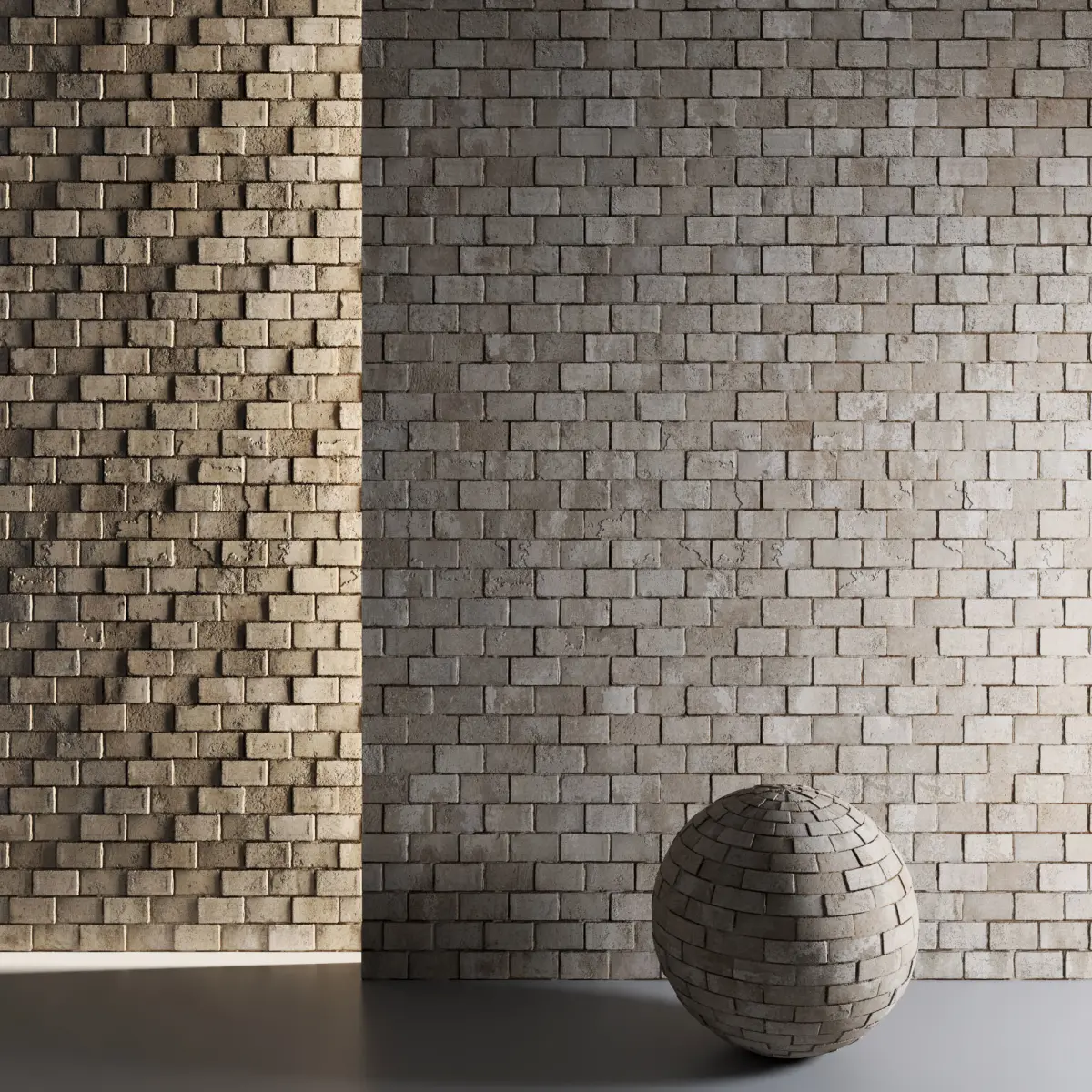 You can increase or decrease the displacement height number in the material settings so that the brick is more prominent or recessedABOUT THE IMAGERY Previews rendered in 3dsMax using Corona. Please note that the studio scenes and light and environment settings are not included.