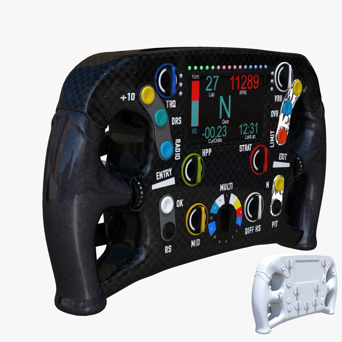 This is a 3D low poly model ,it was designed to provide a high definition in a low poly. Standard low-poly mesh with specific poly count. It`s the most accurate and realistic of the market. This is a recreation of a F1 steering wheel car model,it can suffer modification over the season. The model is completely ready for use visualization in maya. For low poly model simply press 1 and for the high resolution press 3. In Cinema4d go to function menu and subdivide. In 3dmax meshsmooth In the low poly: Poly count : 6152Vertex count : 6553In the high poly: Poly count : 98432Vertex count : 99919Textures included. Each texture is in jpg format and have a 4K texture resolution for high quality It has color textures and specular textures The files are obj, fbx, mb ,c4d and 3DS. Because of different Disk topology at different computers it might be required to change the textures path at the destination computer. The 3D model was created on real car base. It's created accurately, in real units of measurement, qualitatively and maximally close to the original. Please feel free to contact us for any query or if you need further assistance, we will be happy to assist you.