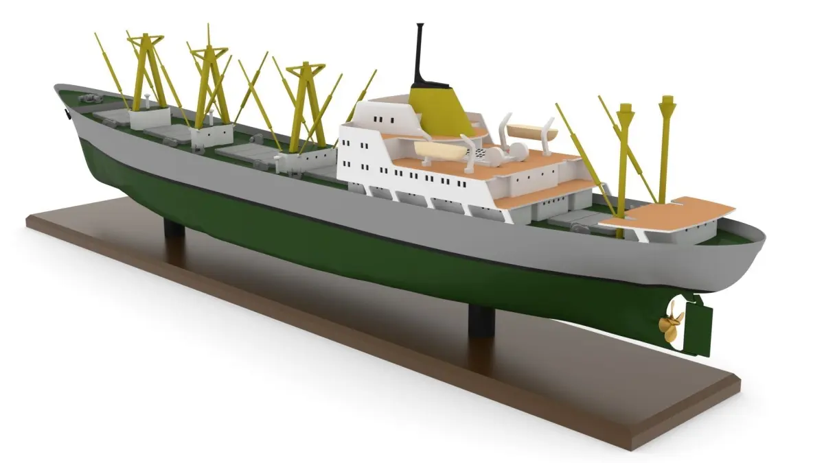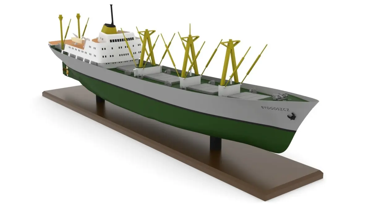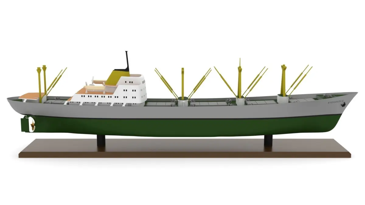 The model is a 1:200 scale model of the original. The parts are 3D print ready. The hull and superstructure should be printed with an FDM machine, the remaining smaller parts with a DLP/SLA printer. The build is easy and straightforward. A build log can be found here: https://modelshipworld.com/topic/30944-ms-bydgoszcz-general-cargo-ship-by-arctic37-scale-1200/