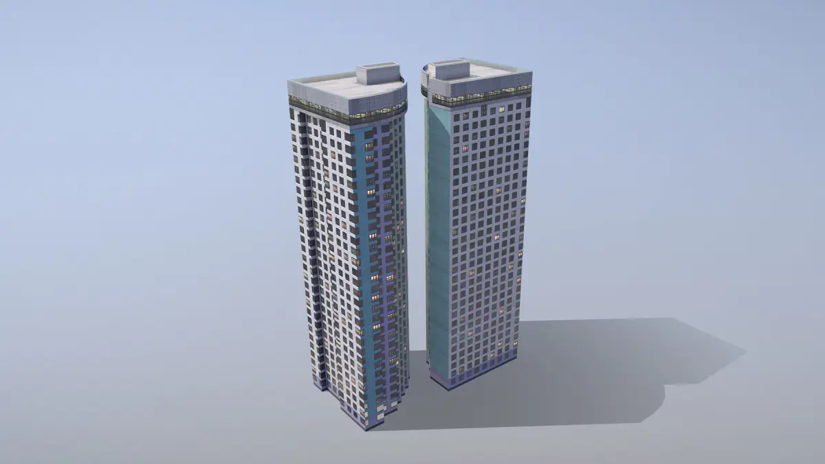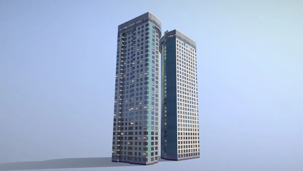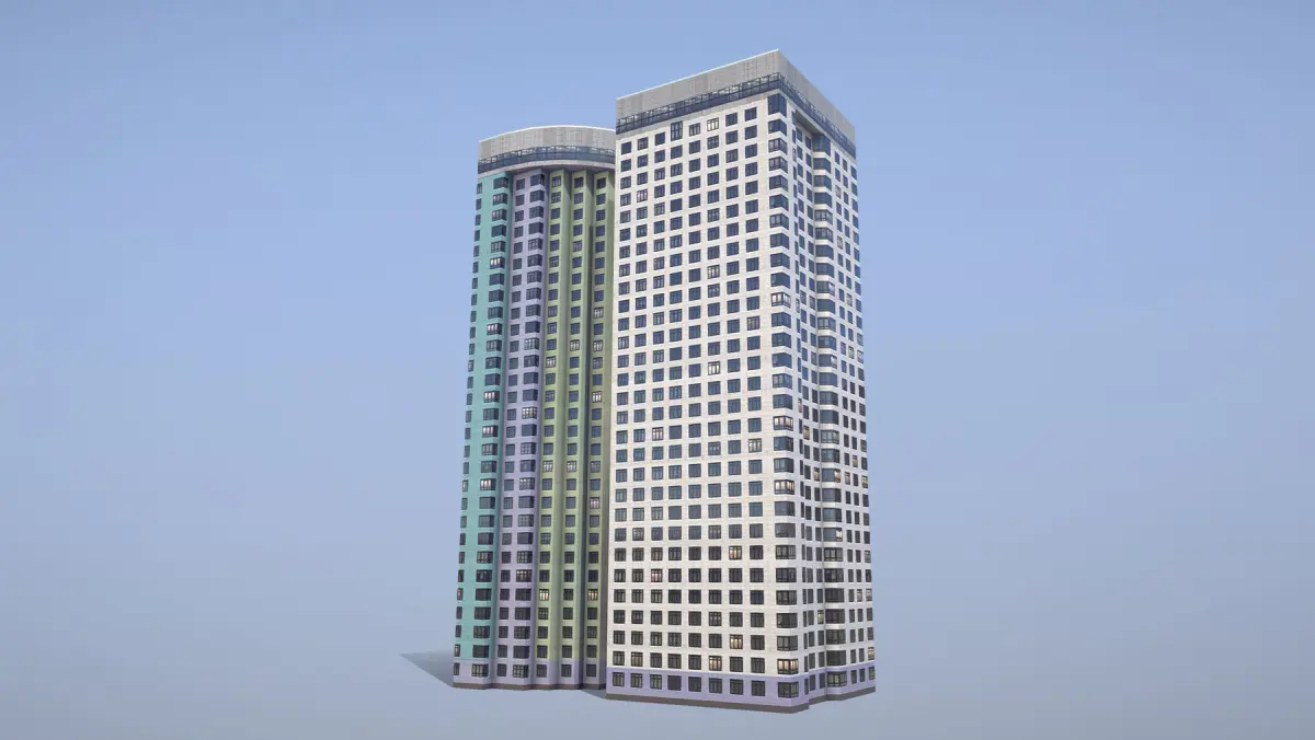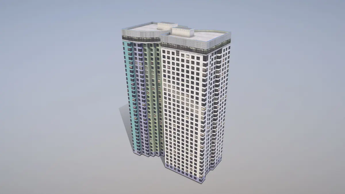 Low-poly (game-ready) 3D model Building with LODs