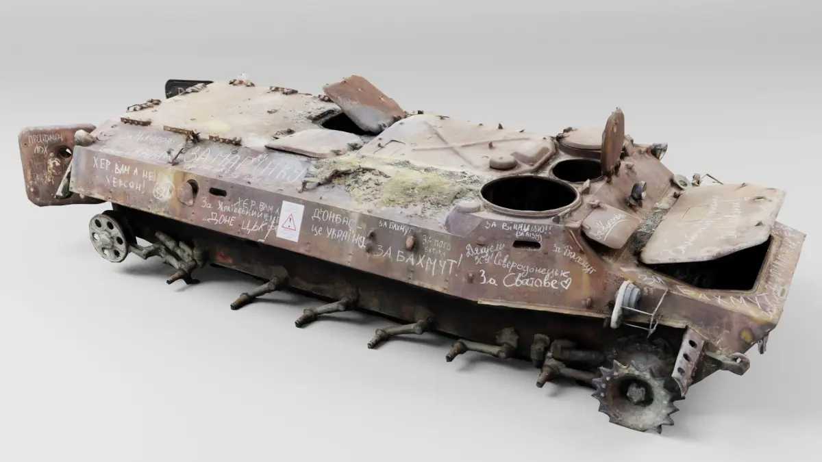 russian MT-LB literally multi-purpose towing vehicle destroyed by Ukrainian army during russian occupation of Ukraine, 2022 war in Ukraine.