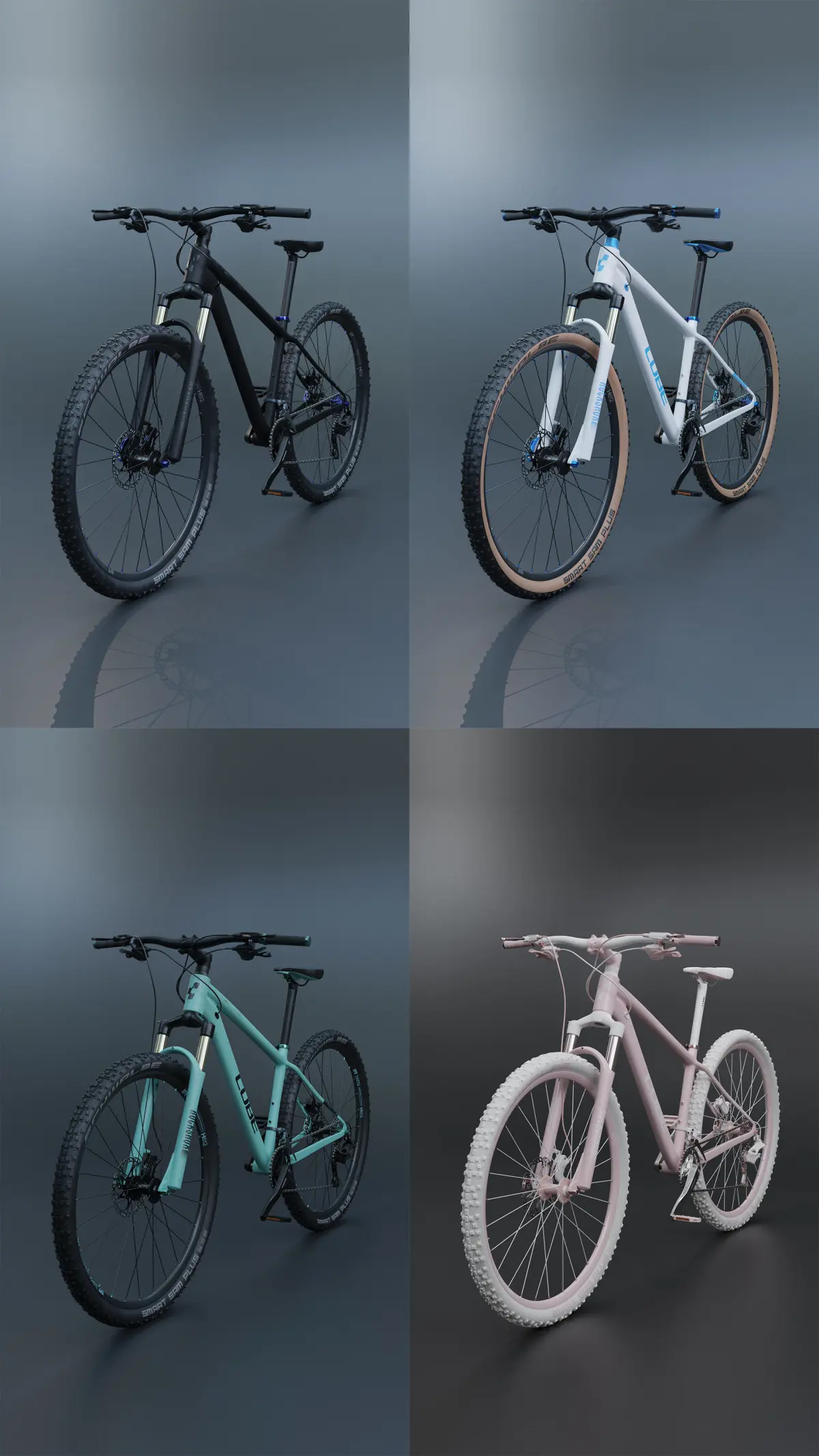 The model include 3 main colors: matte black (2 variations of chrome details - black and blue) / mint green and white + a special version in delicate pink.