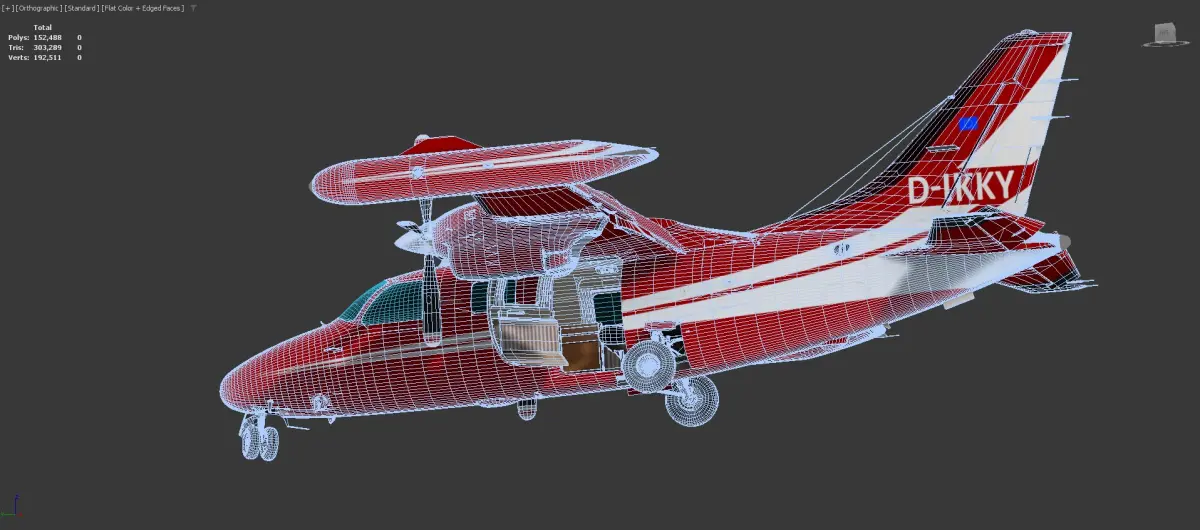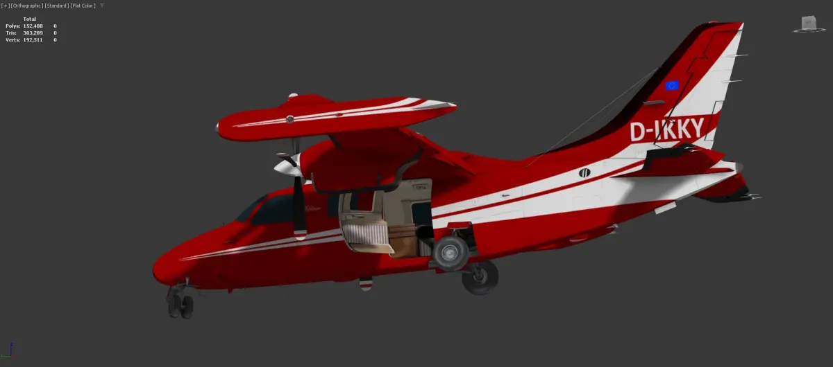 Fully animated inside and out; including all cockpit switches, knobs, dial indicators and controls. Correctly animated exterior: flaps, ailerons, undercarriage, doors, elevators, rudder, trim-tabs, etc.
