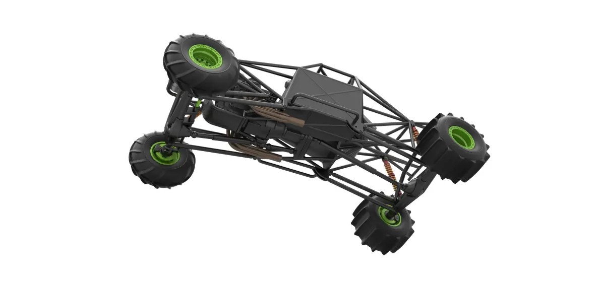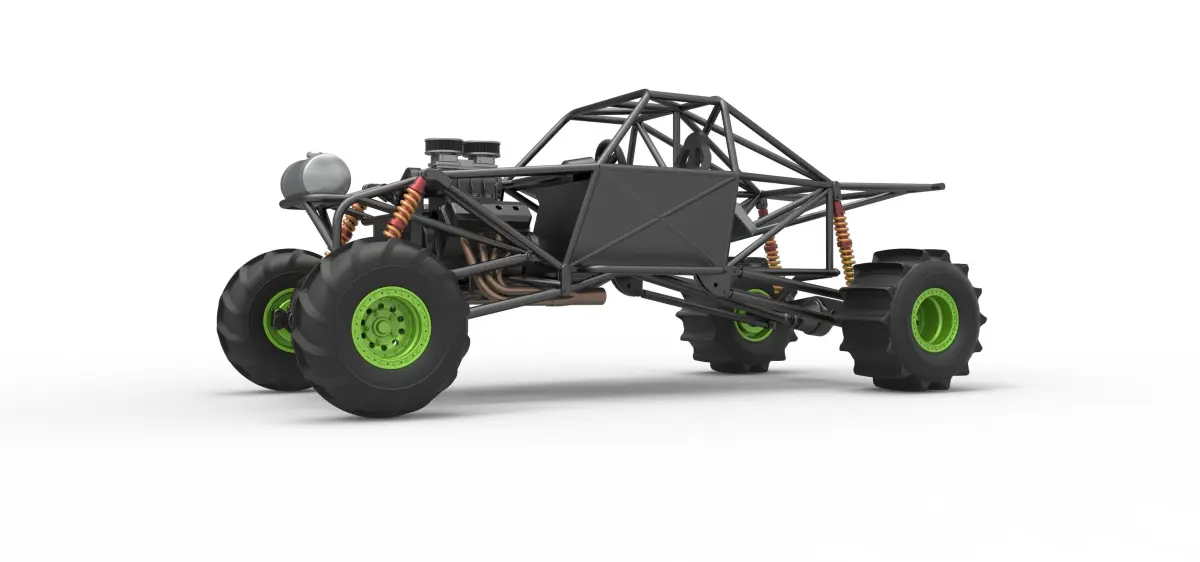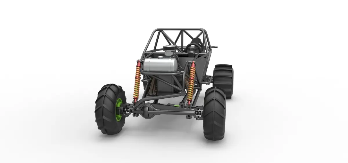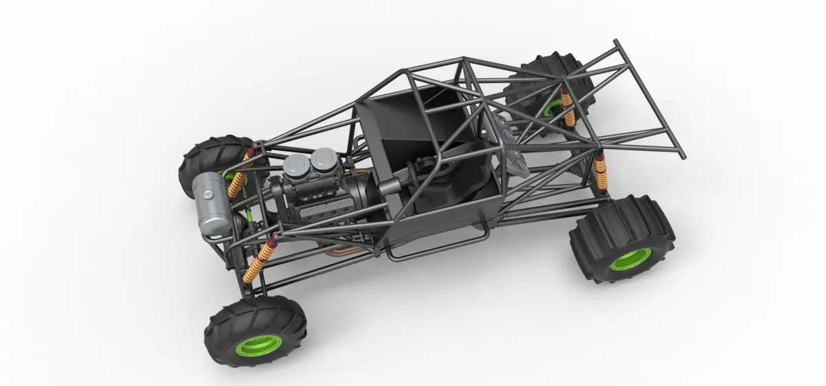 The model consists of parts: Air filter caps, Air filters, Air intake, Body, Engine, Front rims, Front tires, Left exhaust pipes, Radiator, Rear rims, Rear tires, Right exhaust pipes, Seat, Shifter, Steering wheel, Tank.