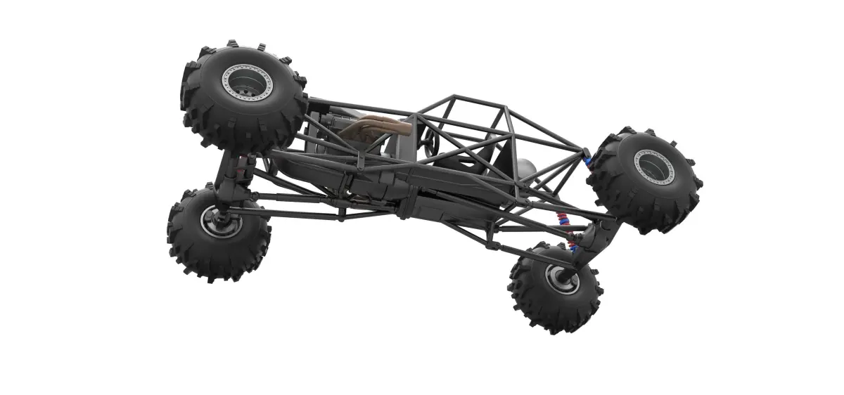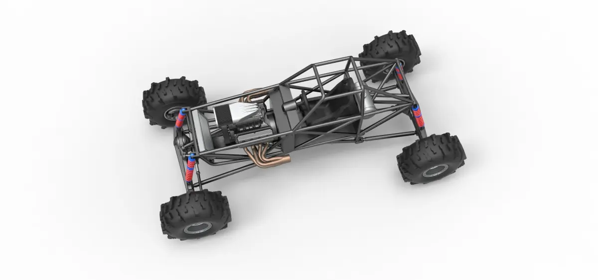 The model consists of parts: Air filter cap, Air filter, Air intake, Body, Engine, Left exhaust pipes, Radiator, Right exhaust pipes, Rims, Seat, Shifter, Steering wheel, Tank, Tires.