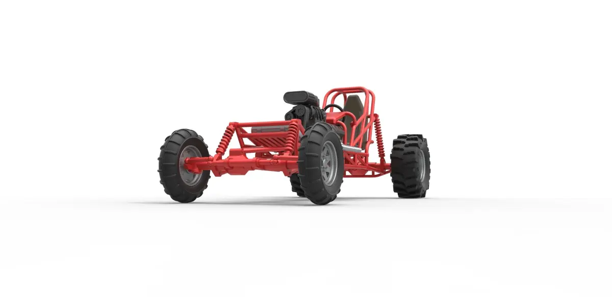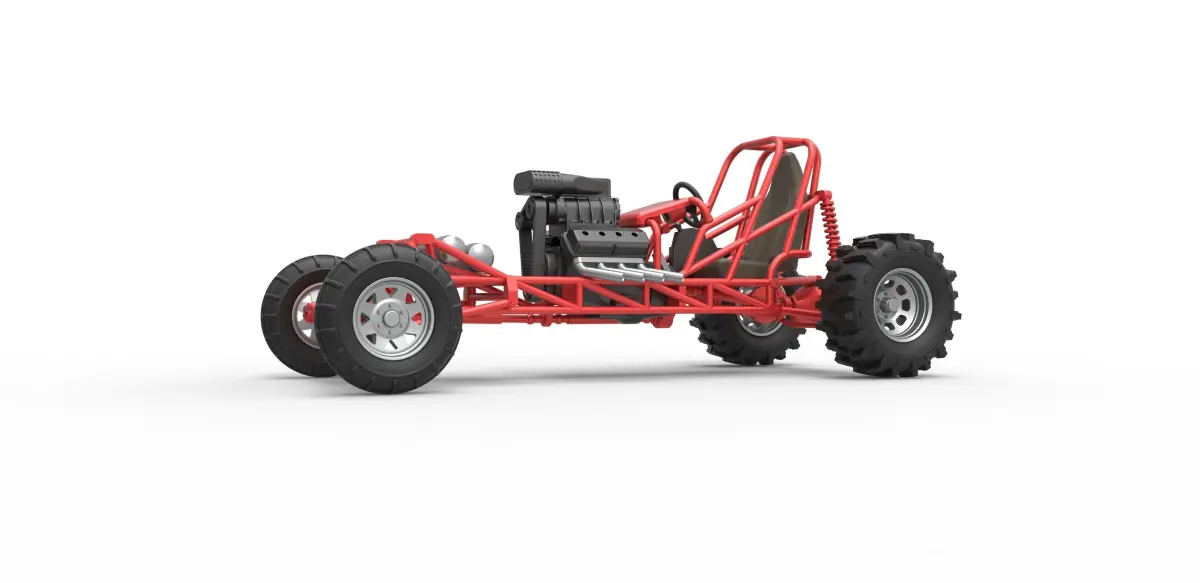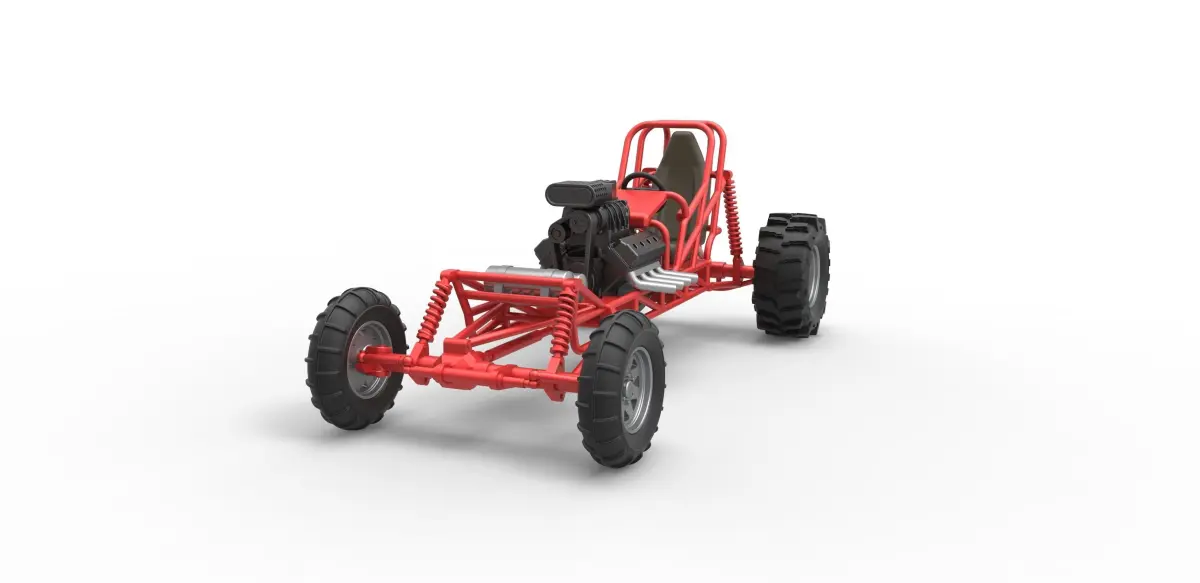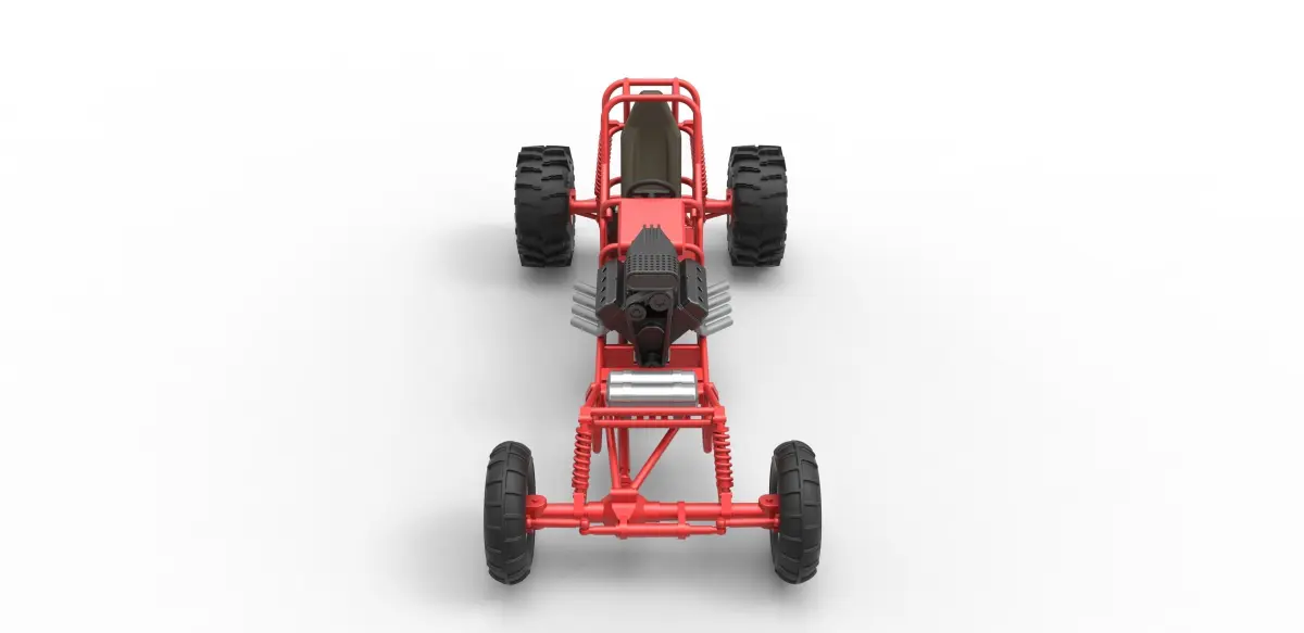 The model consists of parts: Engine, Frame top insert, Frame, Front rim 1,2, Front tire 1,2, Gear shifter, Left exhaust system, Pedal 1,2, Rear rim 1,2, Rear tire 1,2, Right exhaust system, Seat, Steering wheel, Tank 1,2.