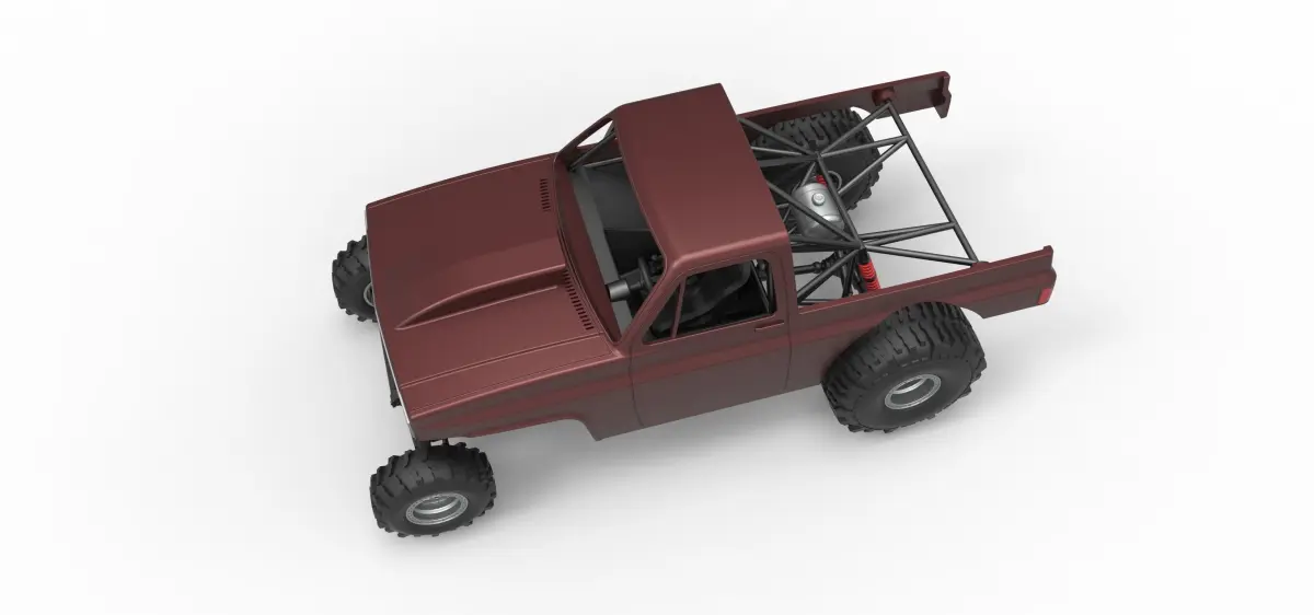 The model consists of parts: Air filter caps, Air filters, Air intake, Body, Engine, Front insert, Front rims, Front tires, Left exhaust pipes, Radiator, Rear rims, Rear tires, Right exhaust pipes, Seat, Shell spacer, Shell, Shifter, Steering wheel, Tank.