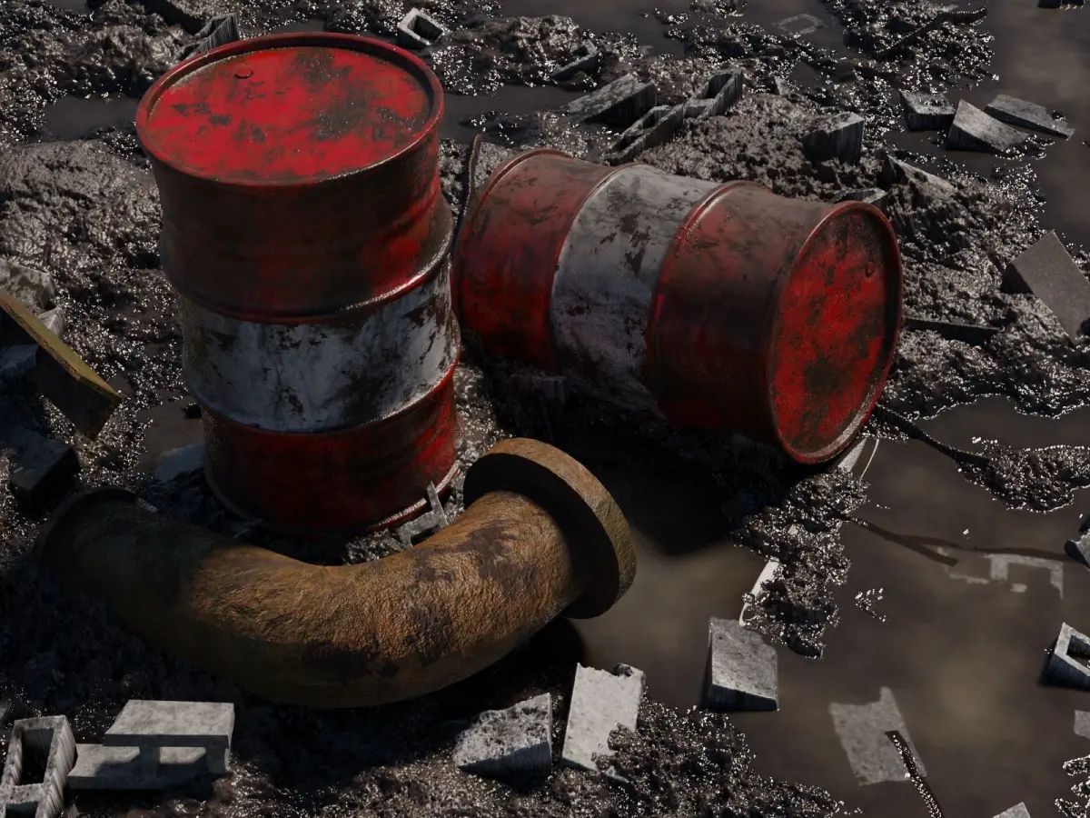 Terrain, barrels and debris have their own metal-roughness PBR textures. Textures are saved in lossless .png format and are embedded in the Blender file. Allegorithmic Substance .sbs and .sbsar are included for the muddy surface.