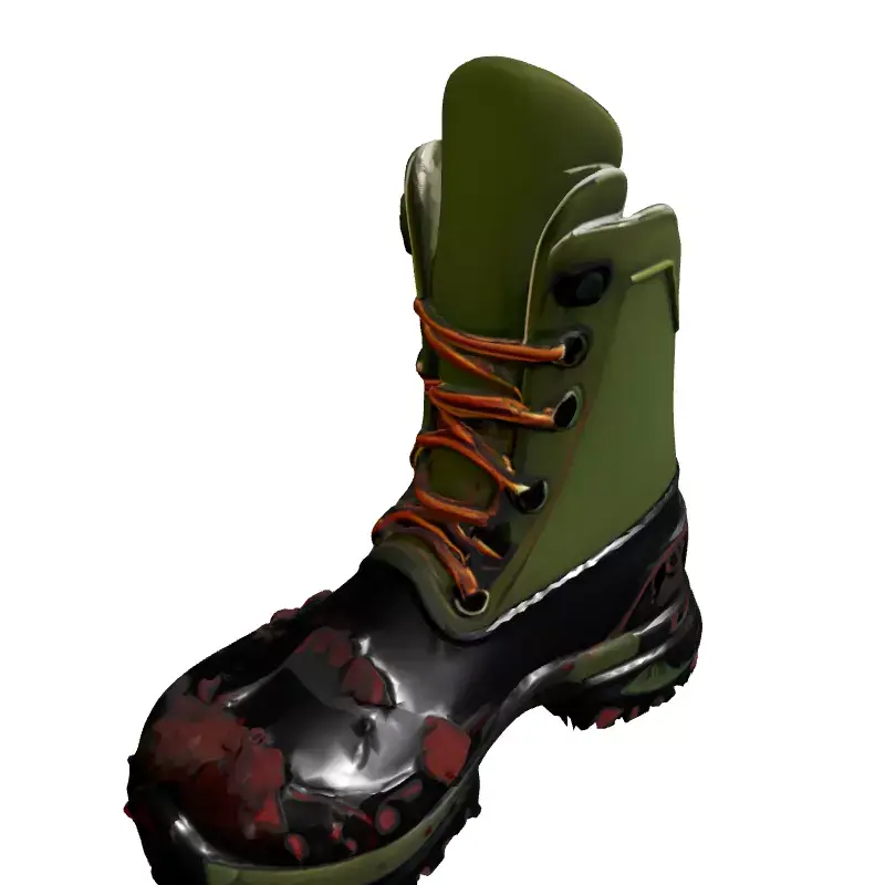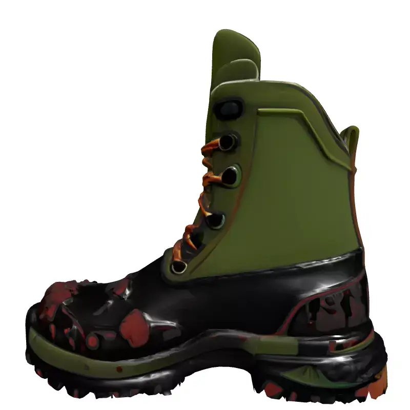 This highly detailed 3D model represents a rugged and realistic winter or combat boot, featuring authentic mud splatters for an immersive, weathered aesthetic. The boot is characterized by its robust design, combining olive green textile with black rubberized sections, complemented by sturdy brown laces and a textured, heavy-duty sole, signifying its resilience in challenging environments. It is meticulously crafted to deliver a lifelike appearance, making it an ideal asset for various digital projects and applications. This model is perfectly suited for game development, enhancing character outfits for soldiers, hikers, outdoor adventurers, or survivors in realistic or post-apocalyptic scenarios. It also performs exceptionally well in architectural visualization, digital art, cinematic renders, and augmented reality (AR) or virtual reality (VR) experiences, where high visual fidelity is paramount. The model is optimized for a PBR (Physically Based Rendering) workflow, ensuring consistent material behavior across diverse lighting conditions and rendering engines. It comes with clean, optimized topology and is fully UV unwrapped, which simplifies texture application and allows for straightforward customization. It supports a wide array of common 3D file formats, including GLB, OBJ, FBX, USD, DAE, ABC, PLY, and STL, ensuring broad compatibility with popular 3D software and game engines. Whether integrated into real-time applications or used for high-quality static renders, this boot model offers exceptional realism and performance.