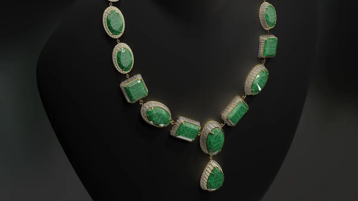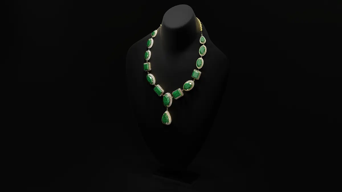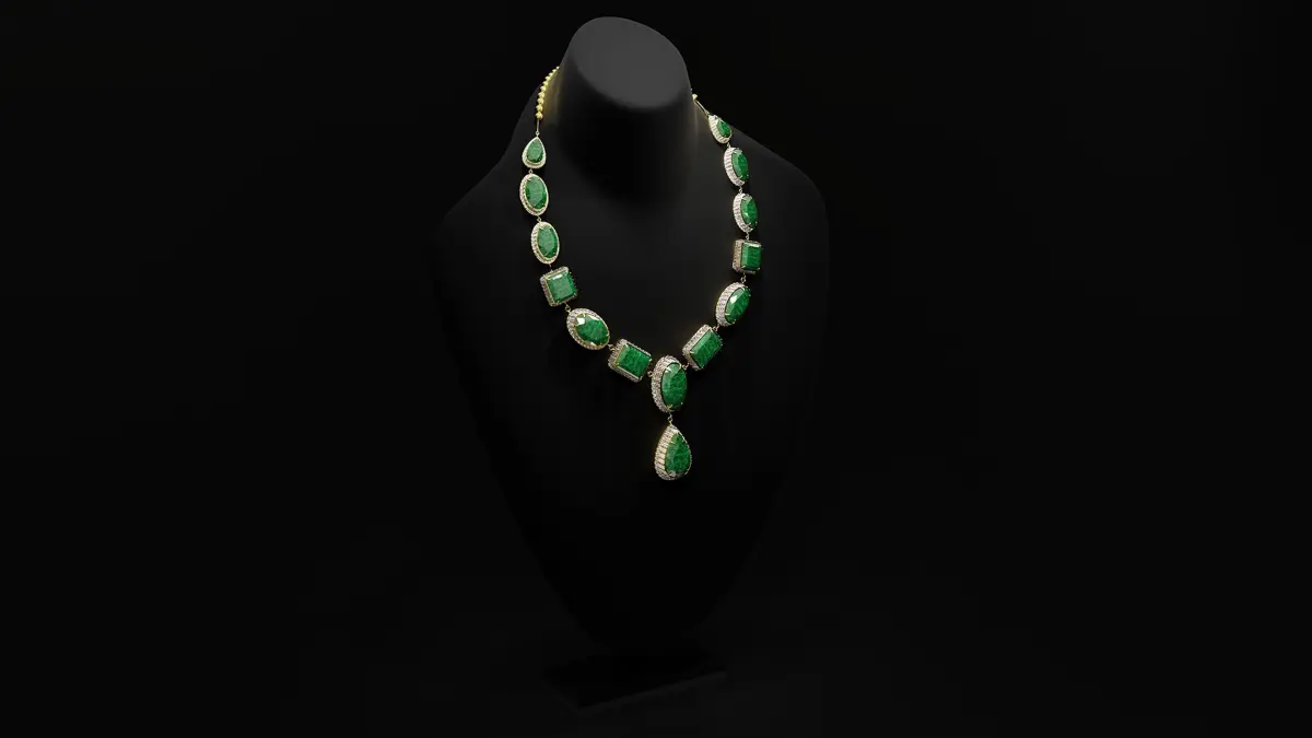 Step into the realm of royal opulence with this breathtaking Mughal-inspired necklace, showcasing 14 majestic emerald stones surrounded by dazzling diamonds.