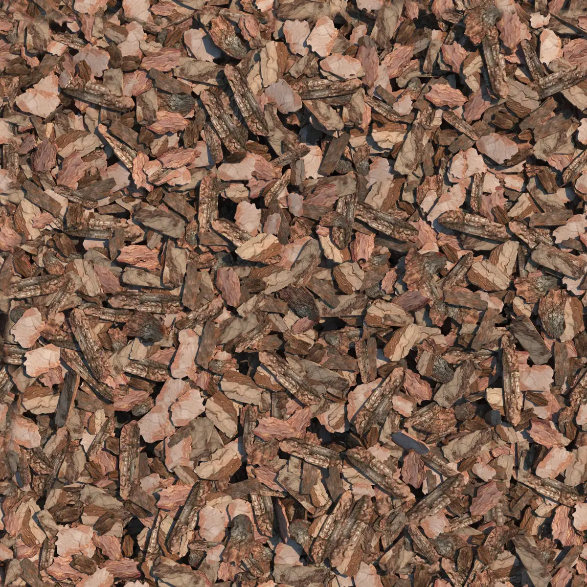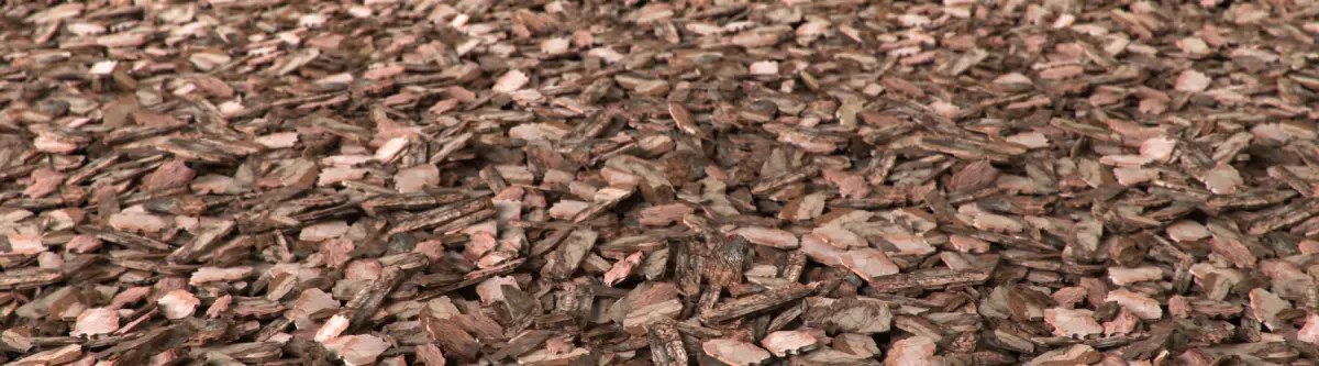 Decorative organic mulch of pine bark for landscaping.