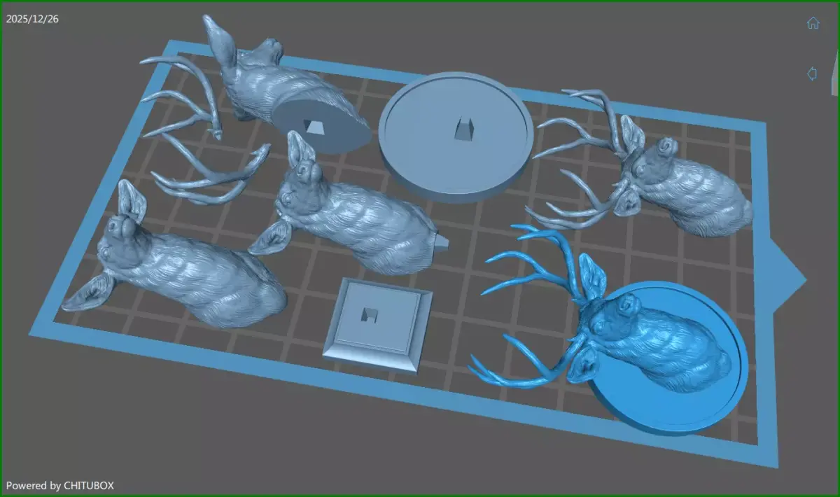 720K STL, OBJ triangulated, Mule Deer Buck bust on the square base in parts
