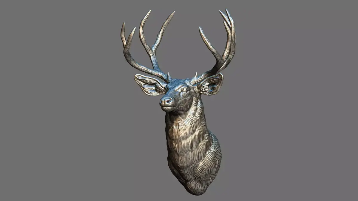 500K STL, OBJ triangulated, Mule Deer Buck bust on the wall merged