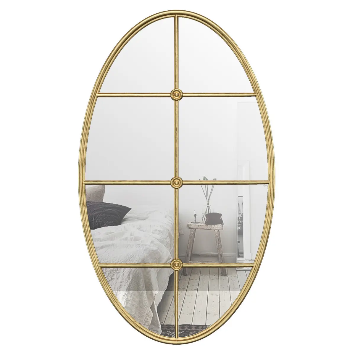 This metal framed mirror provides style and functionality. Featuring a crossover metal frame, similar to panes in a contemporary window this split circle mirror set adds style and light to any room. Fabulous is in a rustic decor setting or a contemporary loft vibe.Features