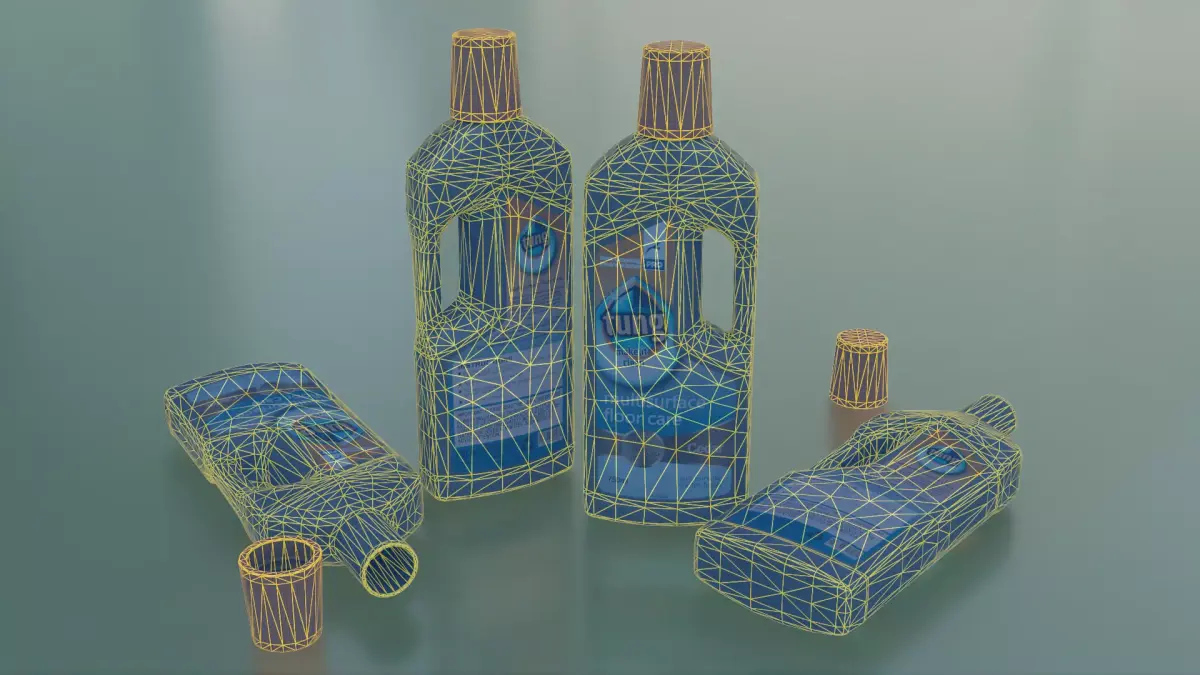 A high-quality, low-poly 3D model of a MultiFloor Cleaner bottle, designed for versatility and performance in real-time applications. This asset is perfect for architectural visualization, product renders, advertising, and games.