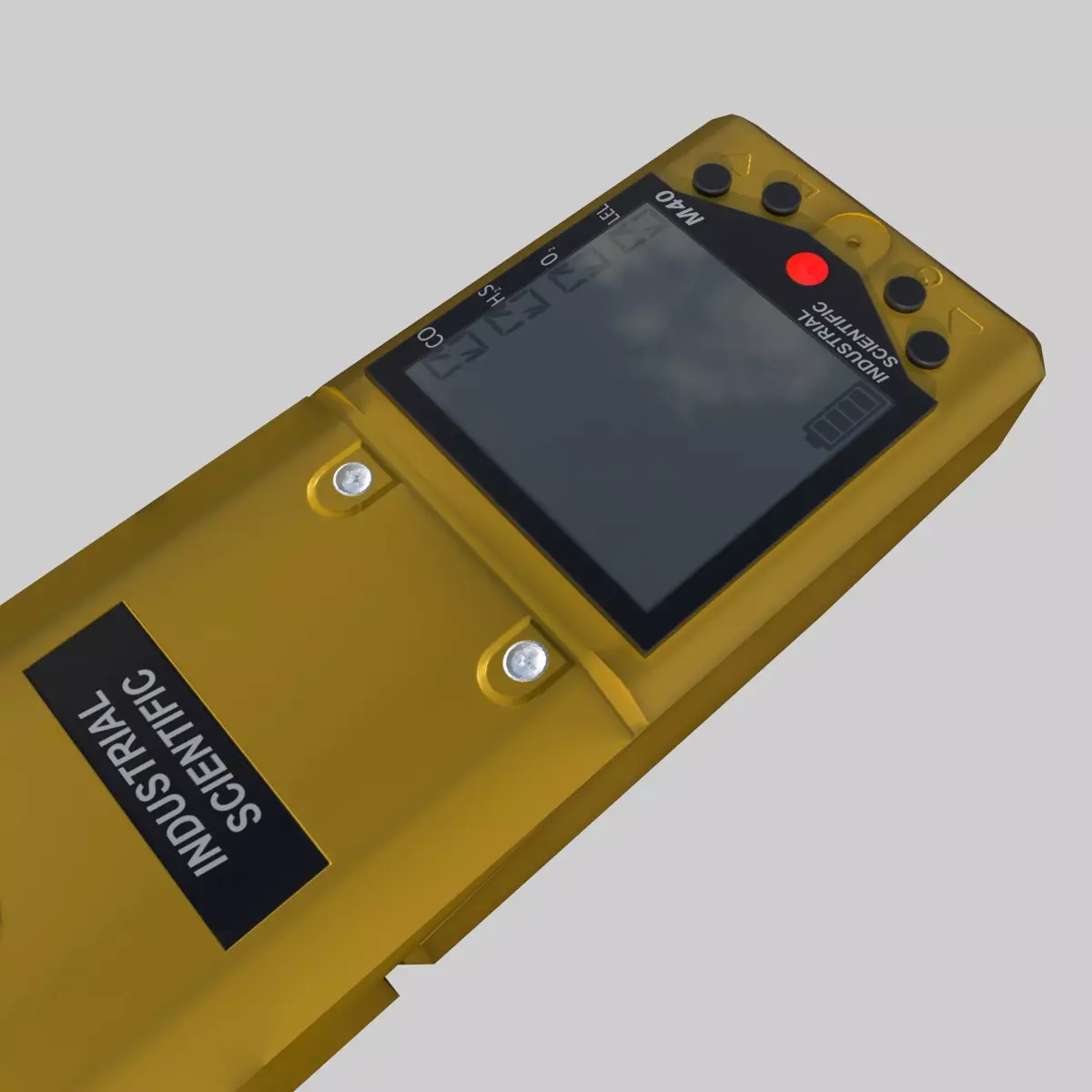 Detailed display layout with labeled gas indicatorsPBR-textured body with metallic screws and screen reflectionsRealistic design suitable for safety training or industrial visualizationOptimized for real-time engines like Unity and Unreal