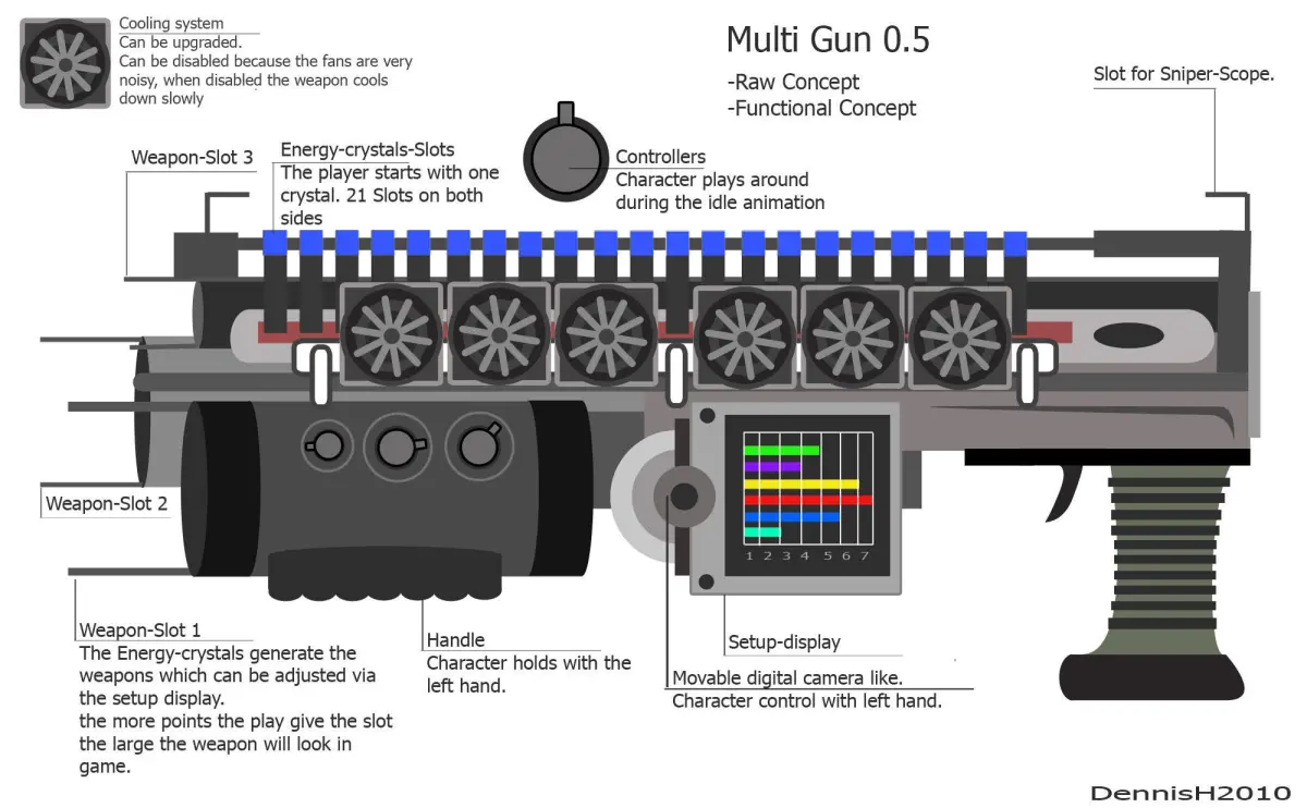 Let me introduce, this is the Multi-Gun a conceptual weapon I hade created in Blender some time ago.