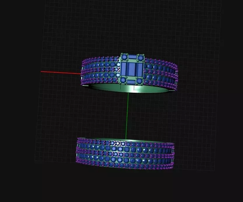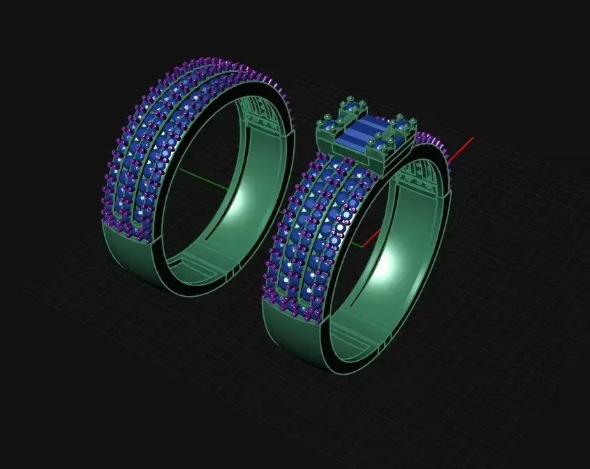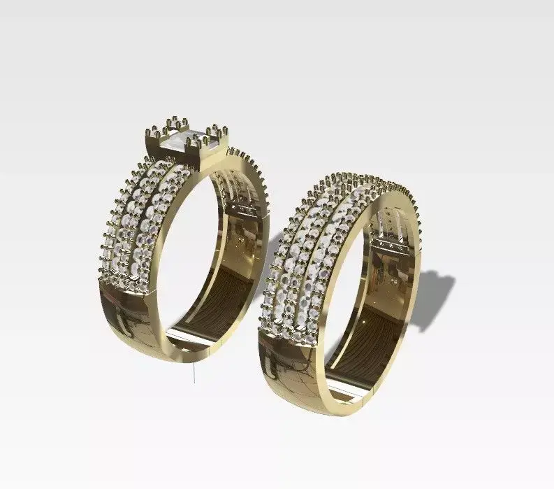 This elegant ring set consists of two separate pieces. The sides are decorated with multiple rows of diamonds, while the top features a baguette-cut diamond design. As shown in the photos, the rings are in perfect condition and ready to wear. A modern and sophisticated choice for special occasions.