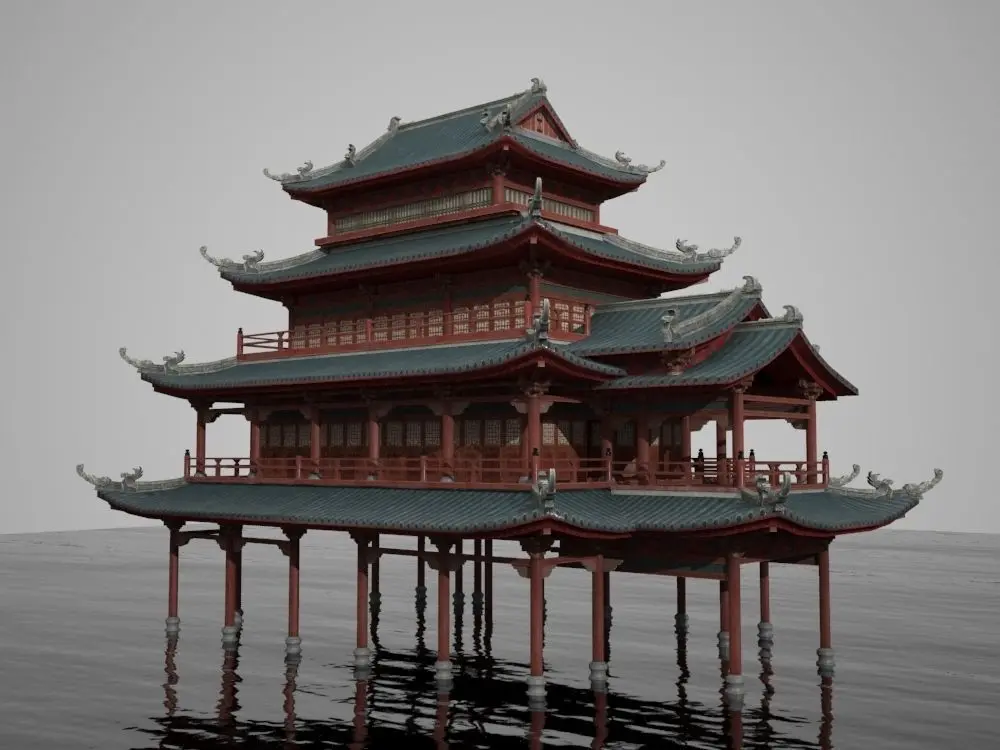 HomeCatalogMulti story wooden structure house Low-poly 3D model