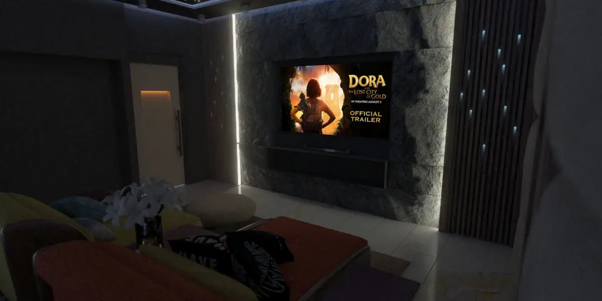 Modern multimedia room with wine cellar, furnished with soft furniture produced by famous brand Ego Italiano.