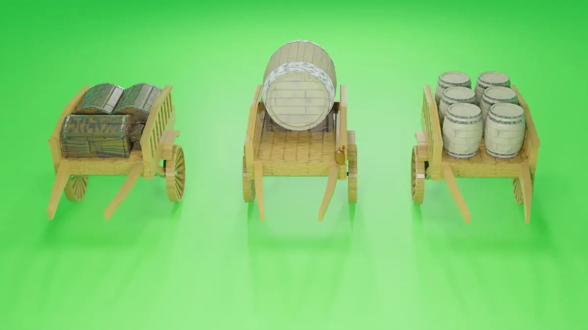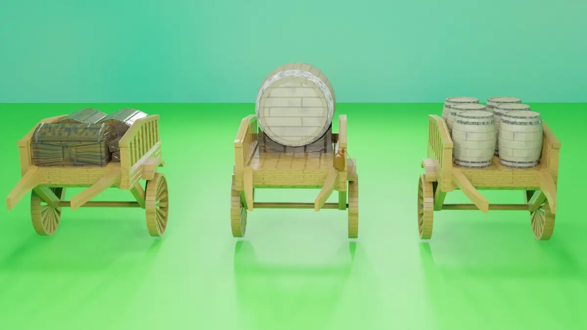 Multi_model Game_modelAn old car Chest BarrelMade in Blender