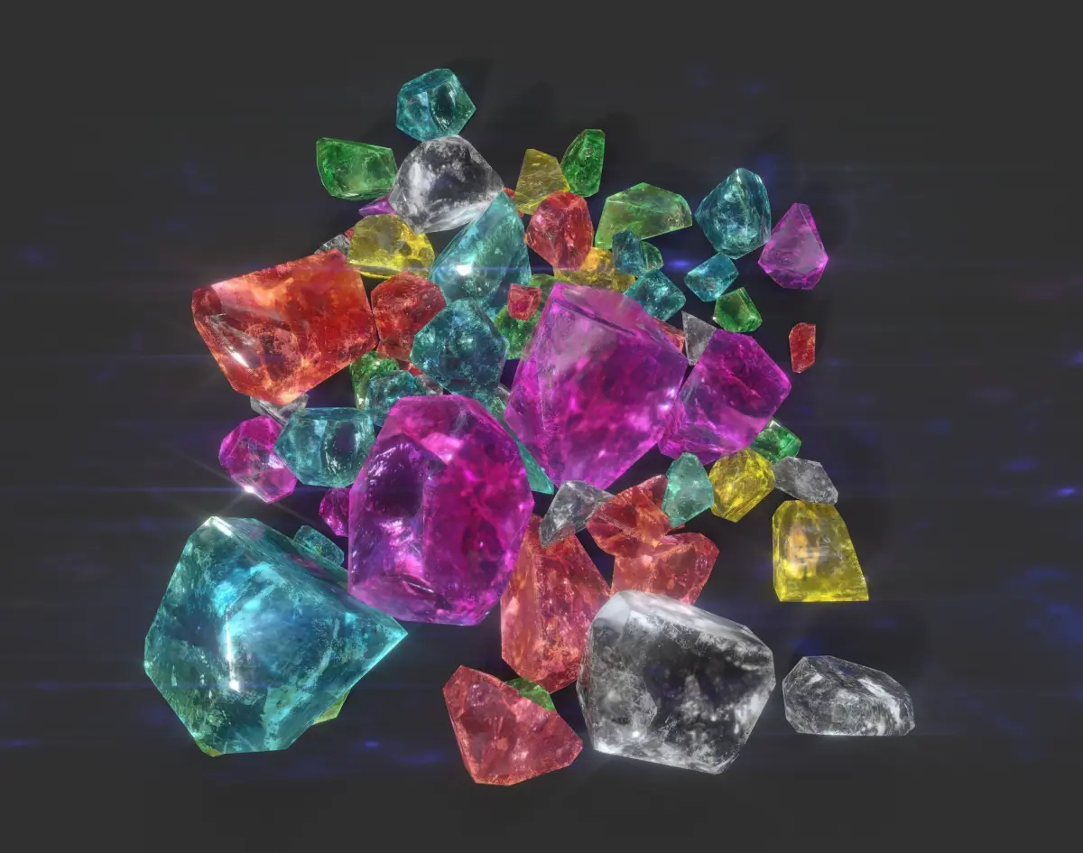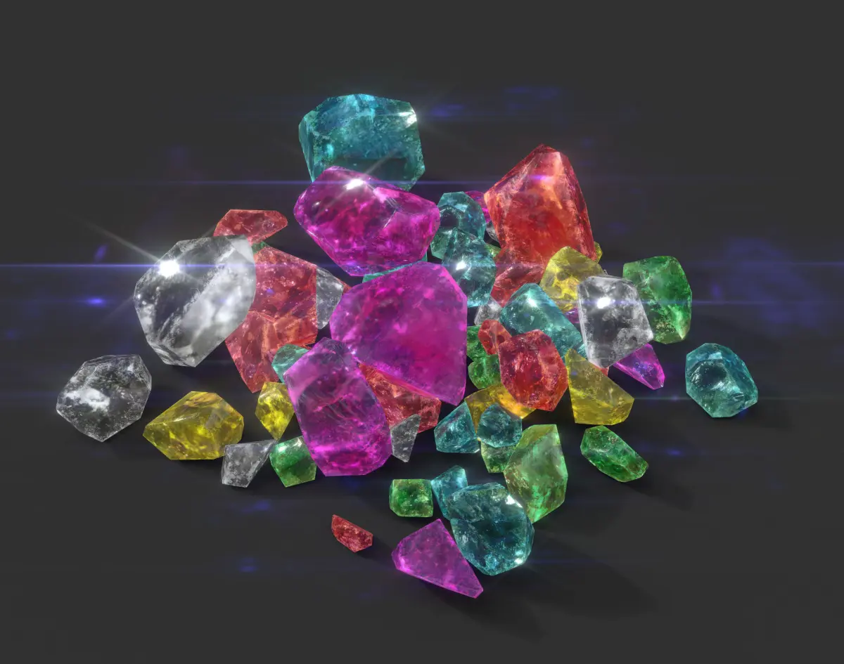 This is the models with Pbr material. Basically, Pbr materials do not support refractive properties (a characteristic of gems). To solve this problem, I used the Roughness and Emissive channels to simulate the object, to create a similar image of the refraction. Hope you understand to use the model most effectively