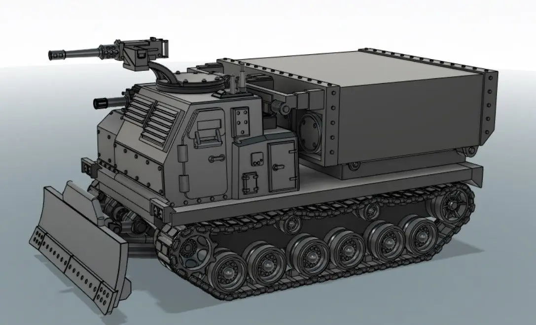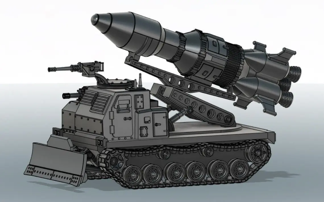 2 Interchangable main weapons (MLRS or ICBM)2 Interchangable front hull mounted weapons 2 Interchangable pintel mounted weapons