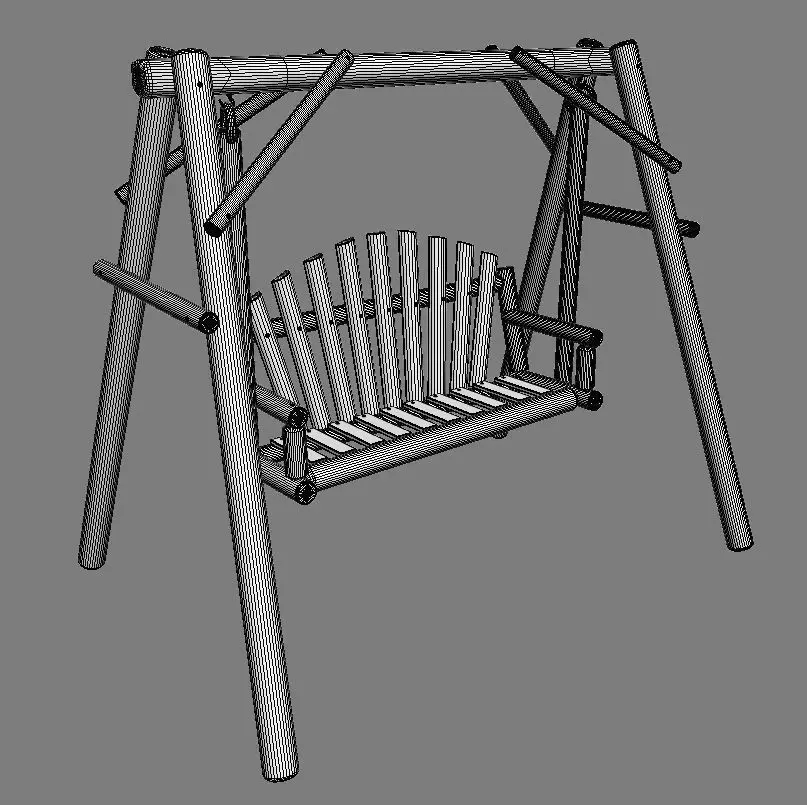 Multiple Seats Wooden Swing 2 3D model