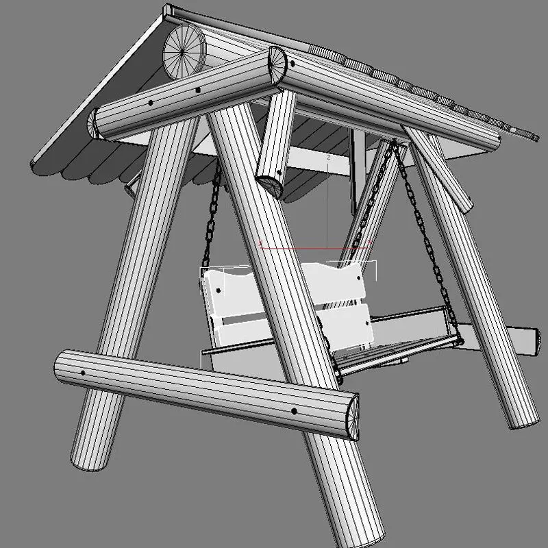 Multiple Seats Wooden Swing with Roof 4 3D model
