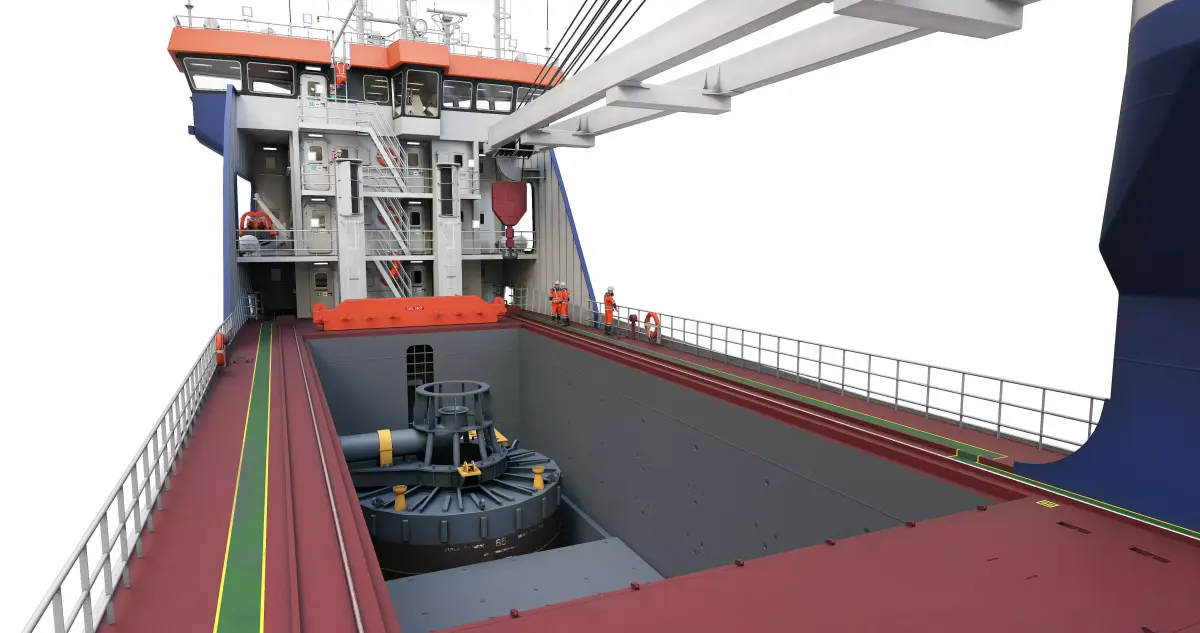 - there are two movable cranes on the deck (the axes of rotation for the tower and boom of the crane are adjusted),