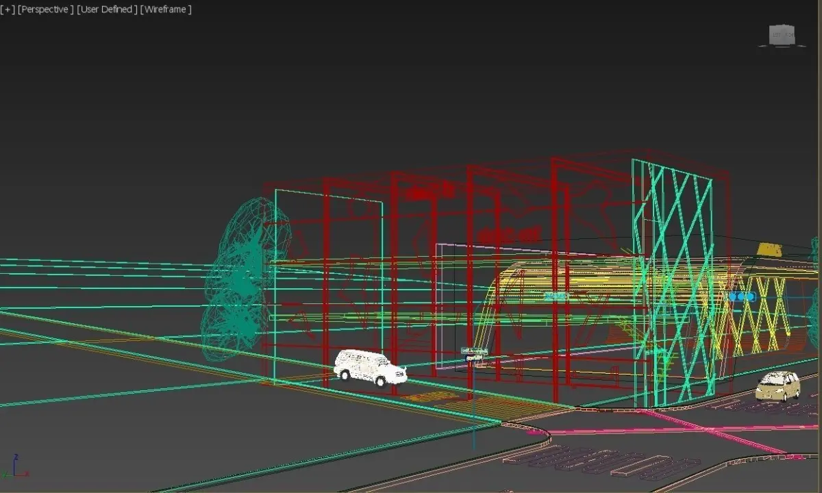 A Photorealistic night scene of a contemporary desgined multipurpose retail building, rendered using 3DS Max and V-ray.