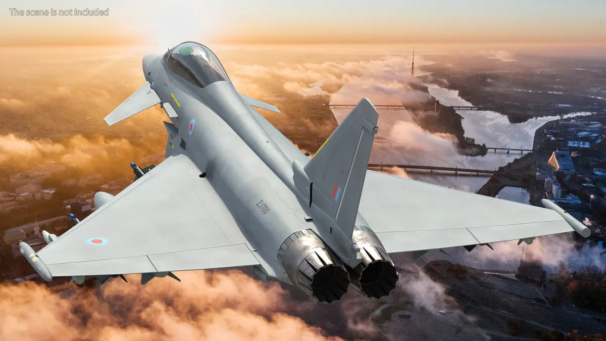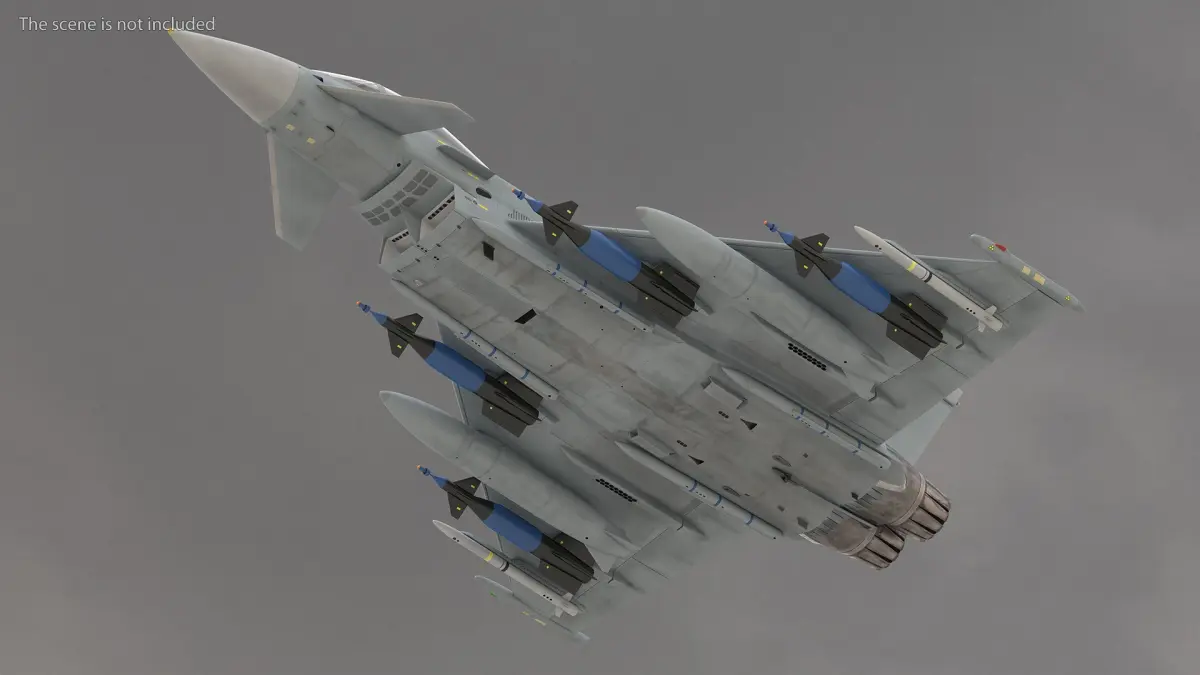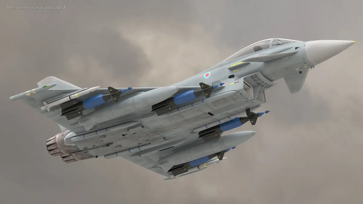 Multirole Fighter Eurofighter Typhoon Rigged for Cinema 4D is a 3d model of a twin-engine, canard-delta wing, multirole fighter aircraft designed and built by a consortium of European aerospace companies.