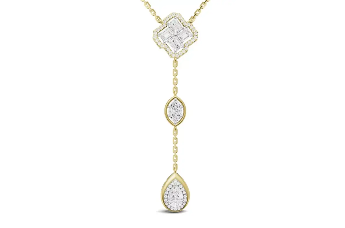 MultiShape Diamond YDrop Chain Pendant With Emrald Marquise Pear 3D print model