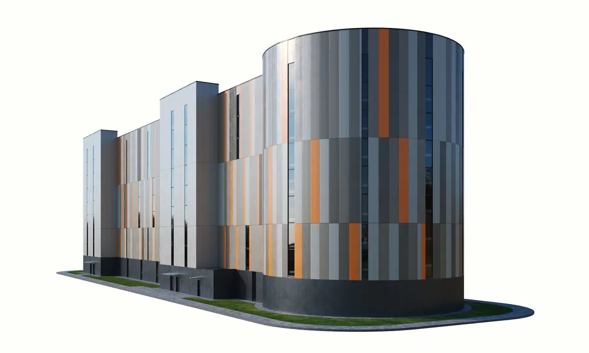 A high-quality model of a multi-storey parking building for cars with 500 places for visualization. The building has 8 floors and is equipped with a circular ramp for lifting cars. 3D model of a building with a driveway, sidewalk and green area around.Dimensions of the building in plan: length - 98.5 meters, width 23.5 meters. Height 28.5 meters.The model is assembled as carefully as possible in real dimensions without the help of any plugins or scripts and can be easily edited.All objects and materials in the scene are logically named and grouped in a separate layer.The color of the metal facade can be conveniently changed.For the convenience of working on all objects, there are different Material IDs and, accordingly, one Multi / Sub Object material.The archive contains versions for Vray and Corona, as well as .fbx files, .obj file and high-quality textures.