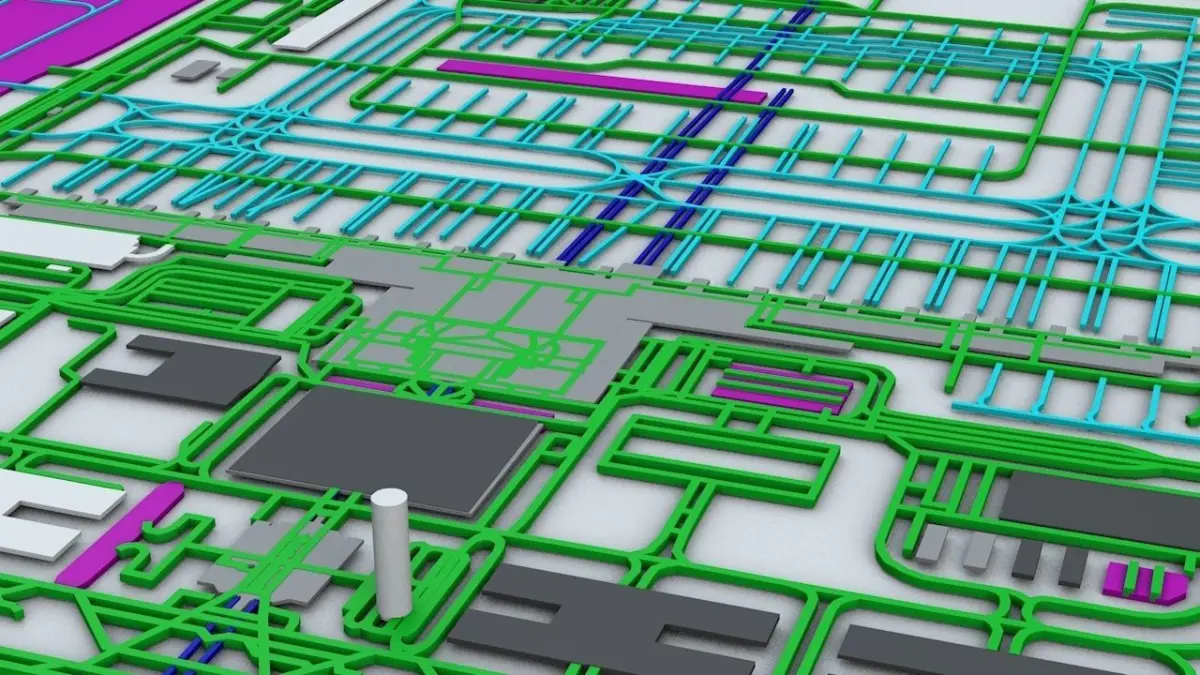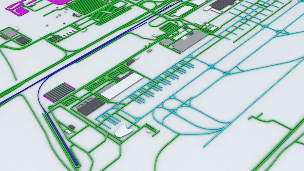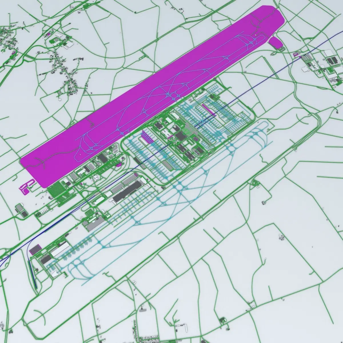 Munich MUC Airport Roads Buildings and Public Transport Lines 3D model