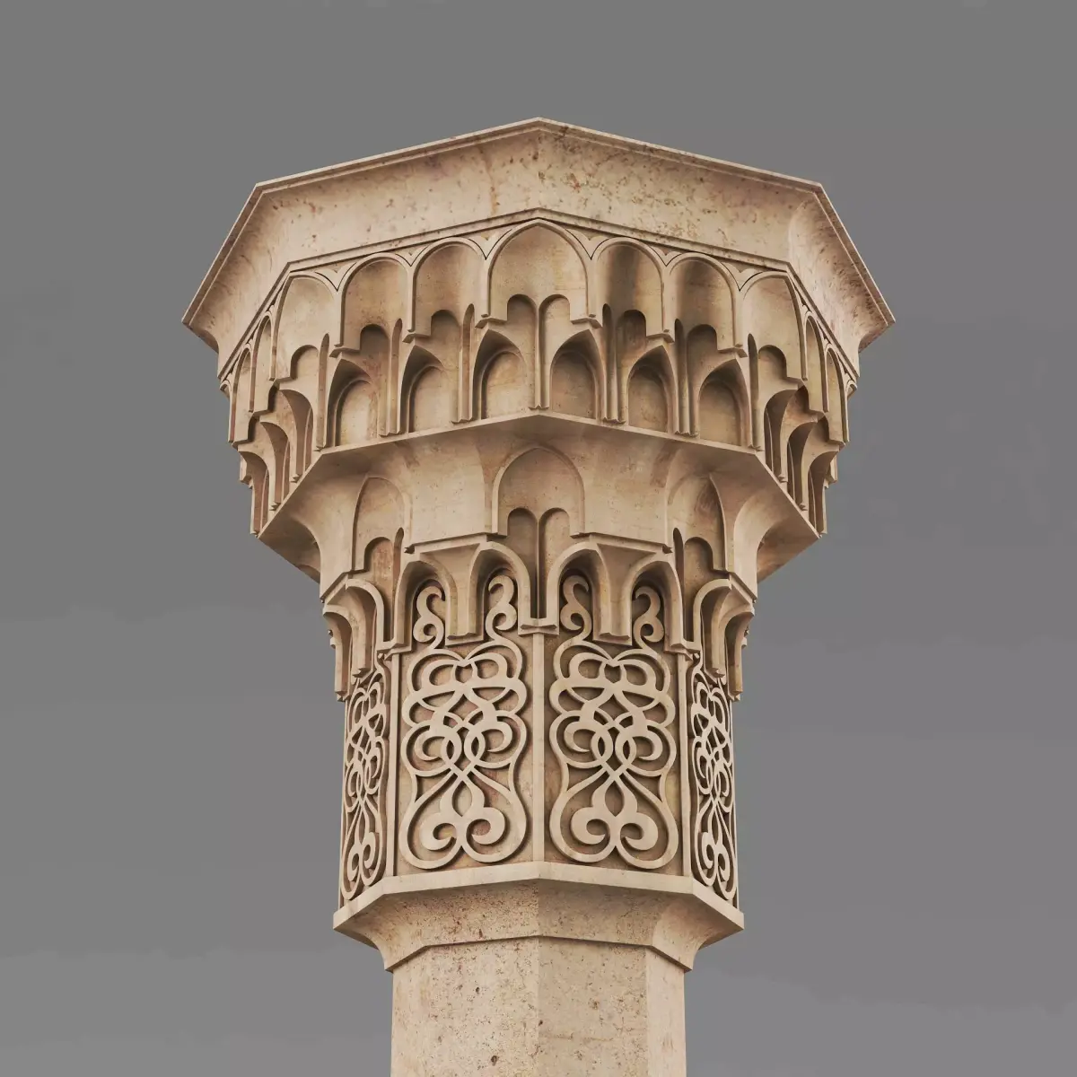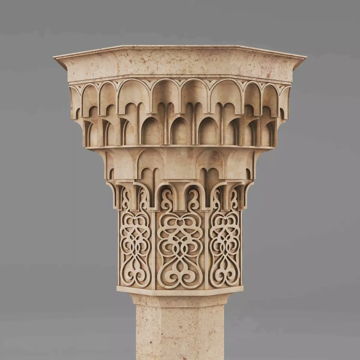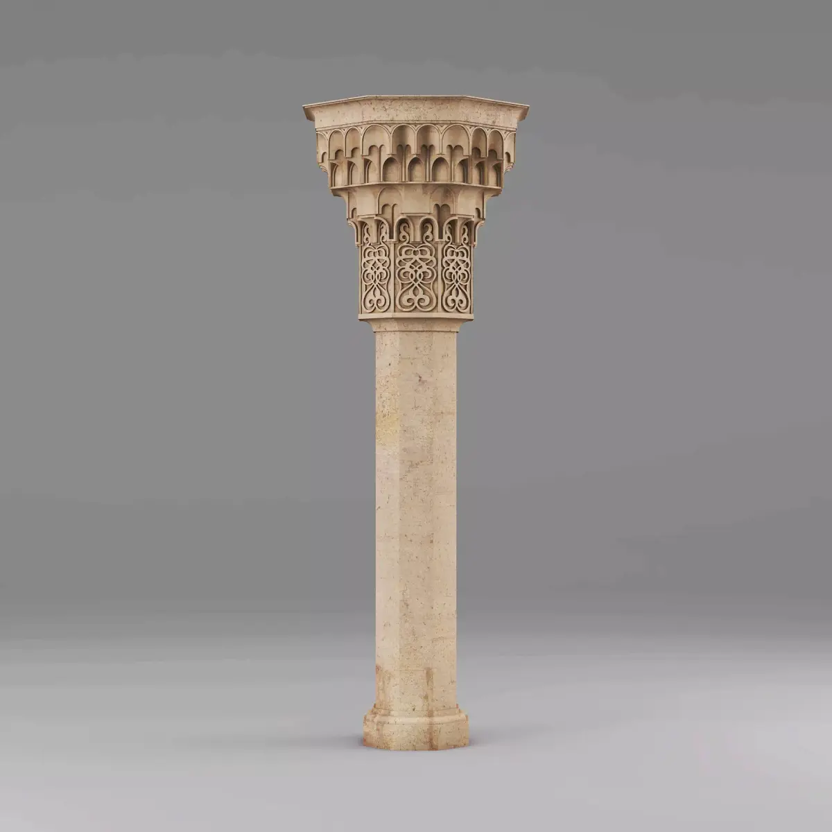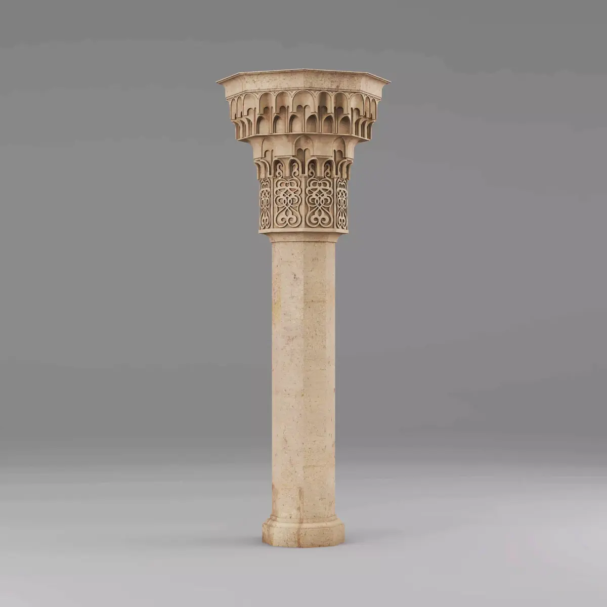 Muqarnas Architectural Column 0053ds max modeling3ds max 2024Vray 6Polygons: 143 465Vertices: 155 984Unwrapped: Fully unwrapped , non-overlappingFormat : FBX, OBJ, STLHeight: 250 cmLength: 88 cmWidth: 88 cmTextures:All textures are seamlessConcrete_Diffuse - JPG 4096x4096Concrete_Bump - JPG 4096x4096Dirt_Texture - PNG 2200x2200