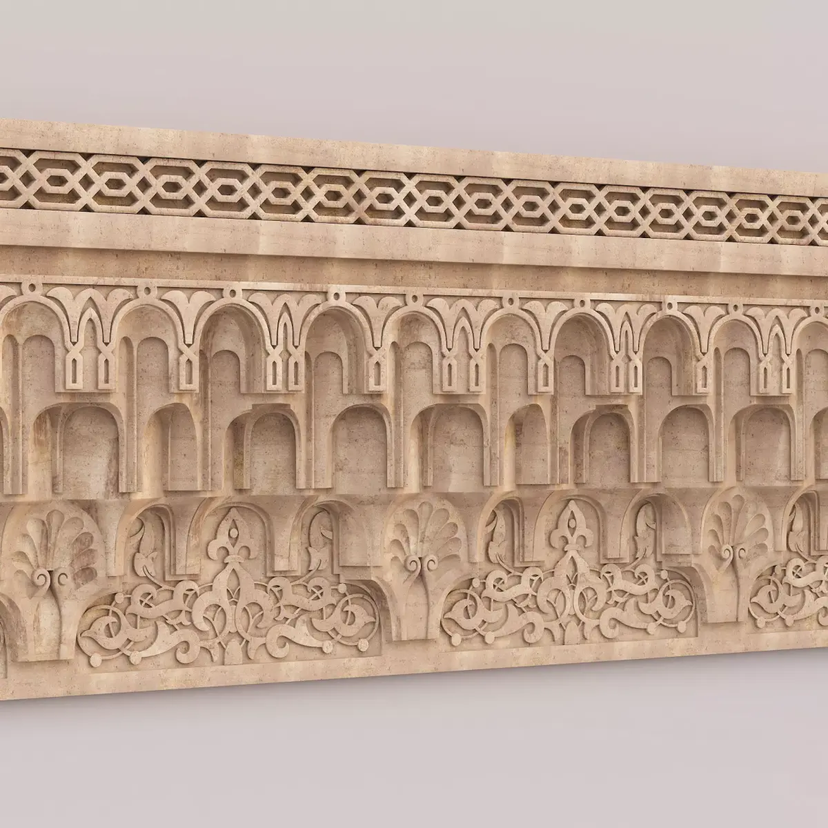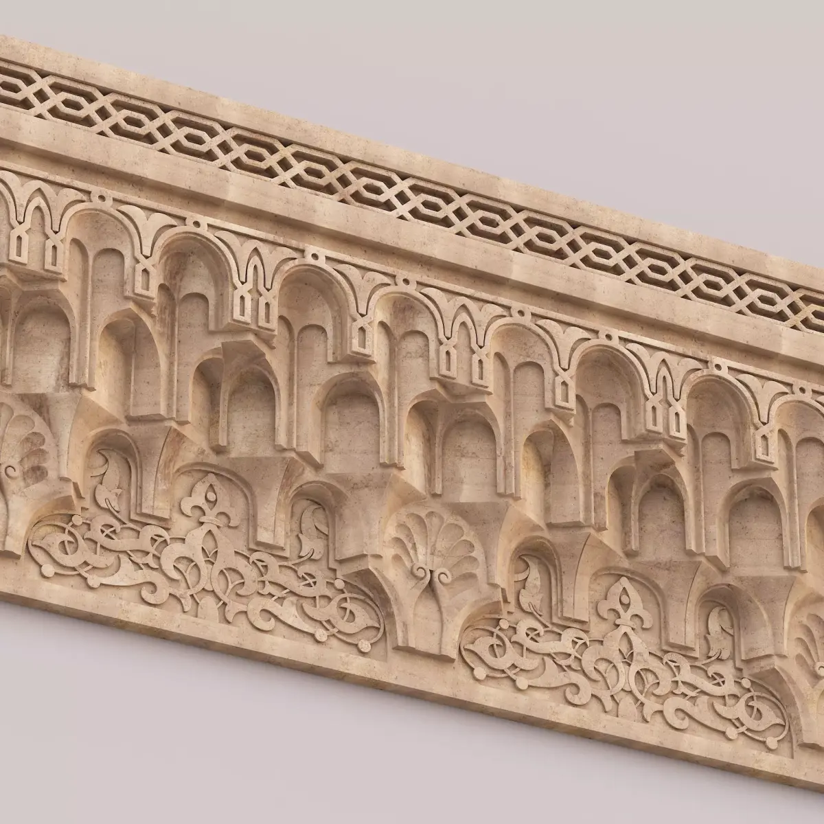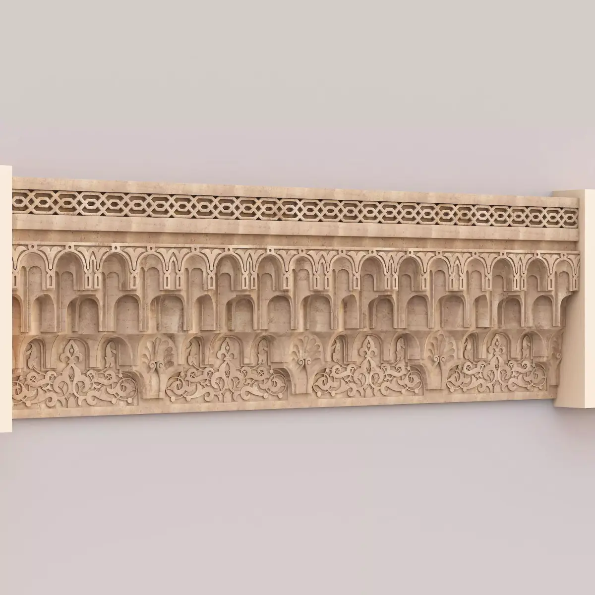 Muqarnas Architectural Cornice 004Polygons: 136 372Vertices: 152 765Height: 70 cmLength: 13 cmWidth: 231 cm