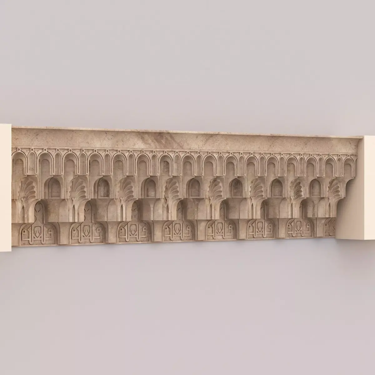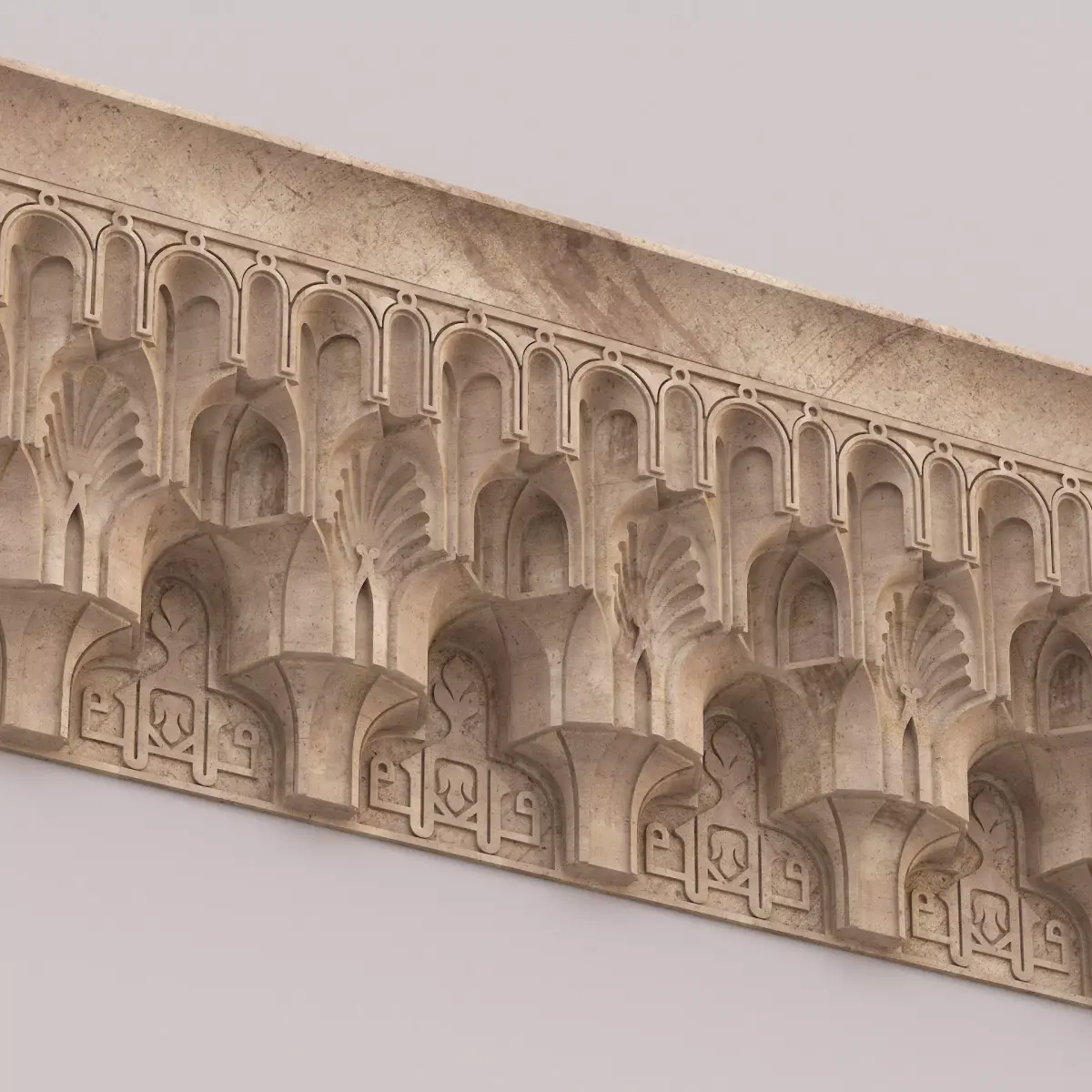 Muqarnas Architectural Cornice 002Polygons: 83 497Vertices: 88 929Height: 45 cmLength: 16 cmWidth: 206 cm