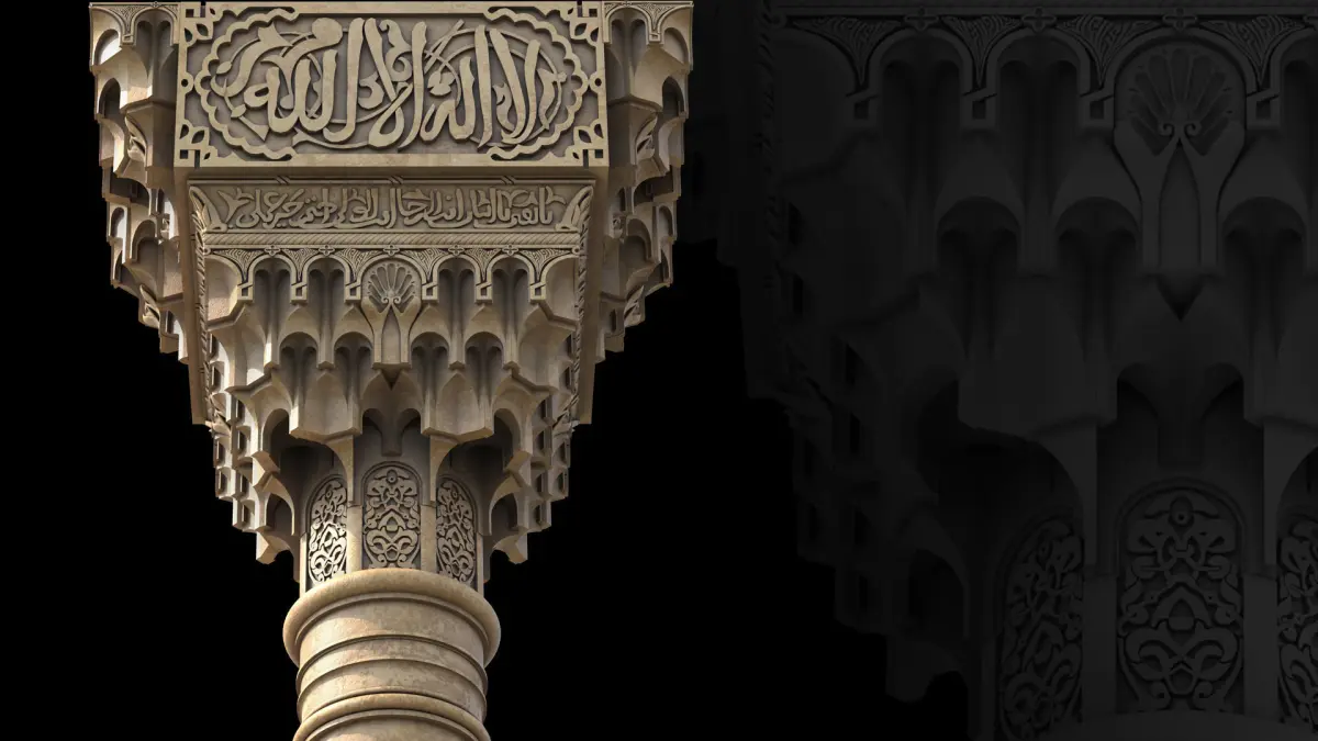 This column is one of the unique columns used in the Alhambra in Granada. It was designed in the manner of muqarnas, as you can see, the details have been checked a lot to be very close to the original column.It was built using 3ds Max software, and it is also available in other formats obj + stl