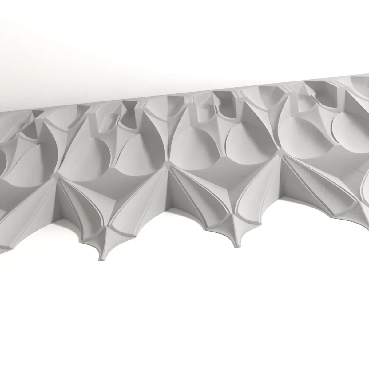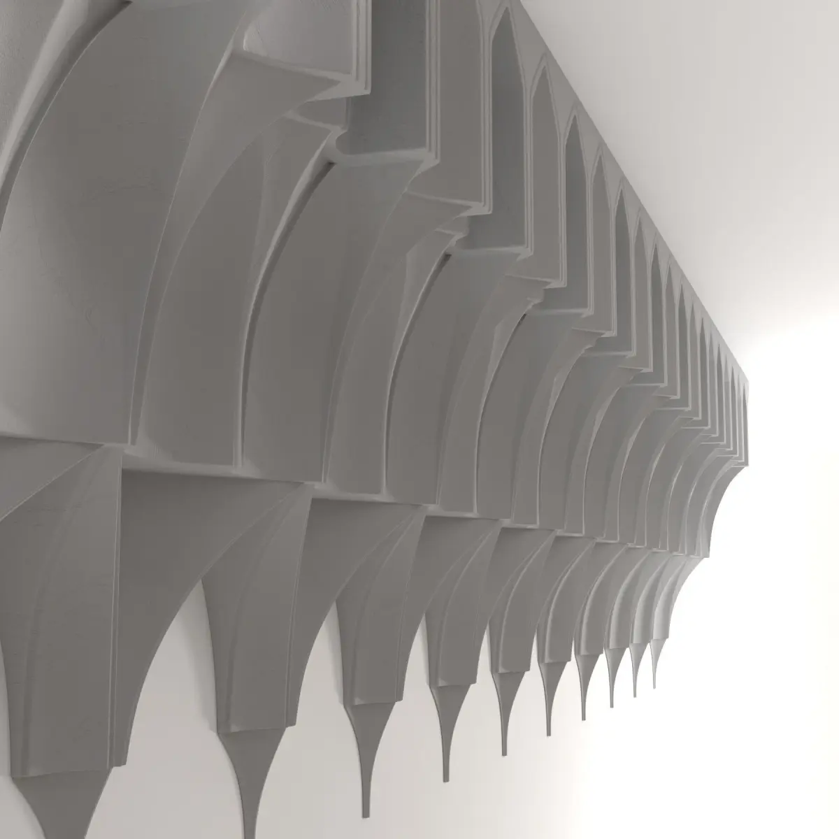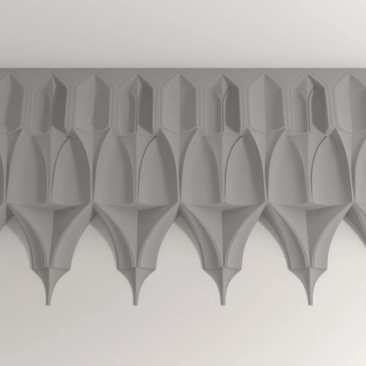Muqarnas , also known in Iberian architecture as Mocárabe , is a form of three-dimensional decoration in Islamic architecture in which rows or tiers of niche-like elements are projected over others below.[1] It is an archetypal form of Islamic architecture, integral to the vernacular of Islamic buildings,[2][3] and typically featured in domes and vaults, as well as iwans, entrance portals, or other niches.[3] It is sometimes referred to as honeycomb vaulting[4] or stalactite vaulting.