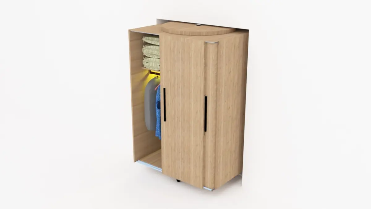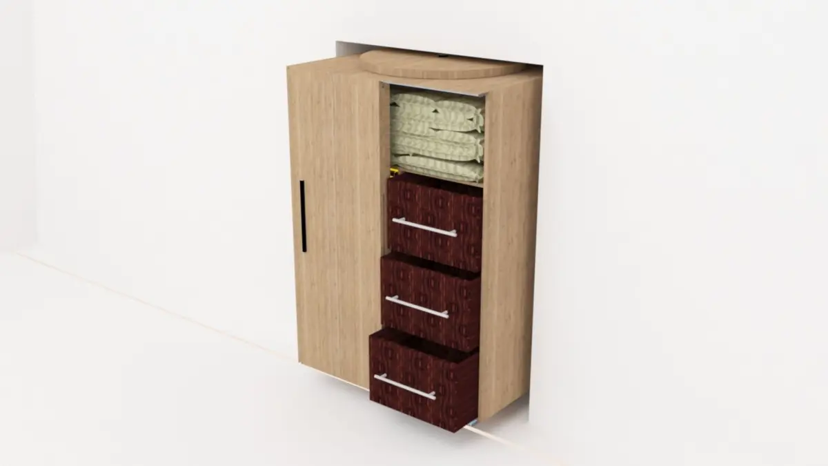 The multi-functional wardrobe (front) and bed (back side) is using for small room with need more space. This furniture can save 20% of room space